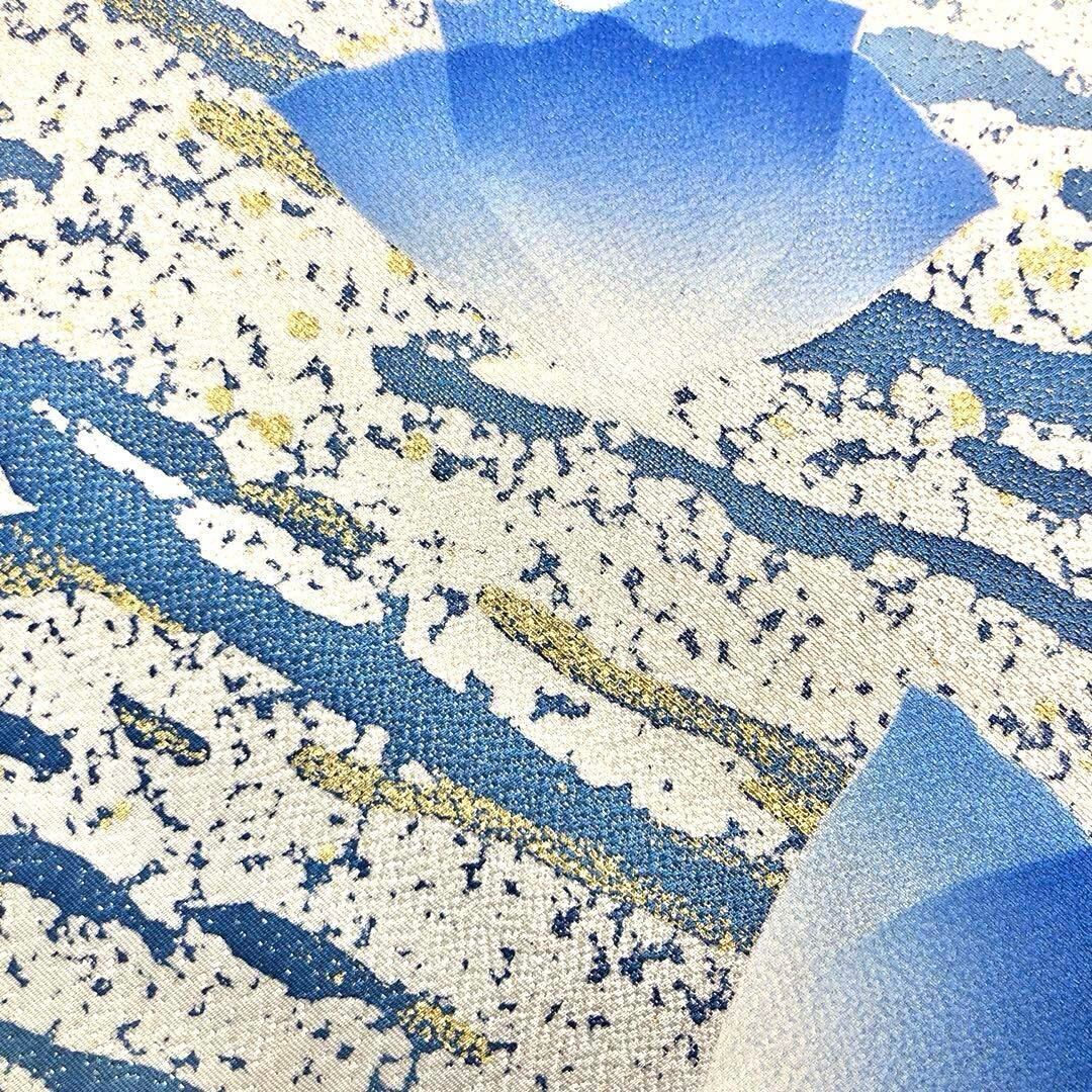 袋帯 鮮やかな青色に暈し 蝶々柄 金彩 銀通し 銀灰色 O-3259