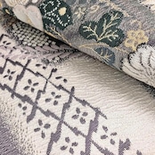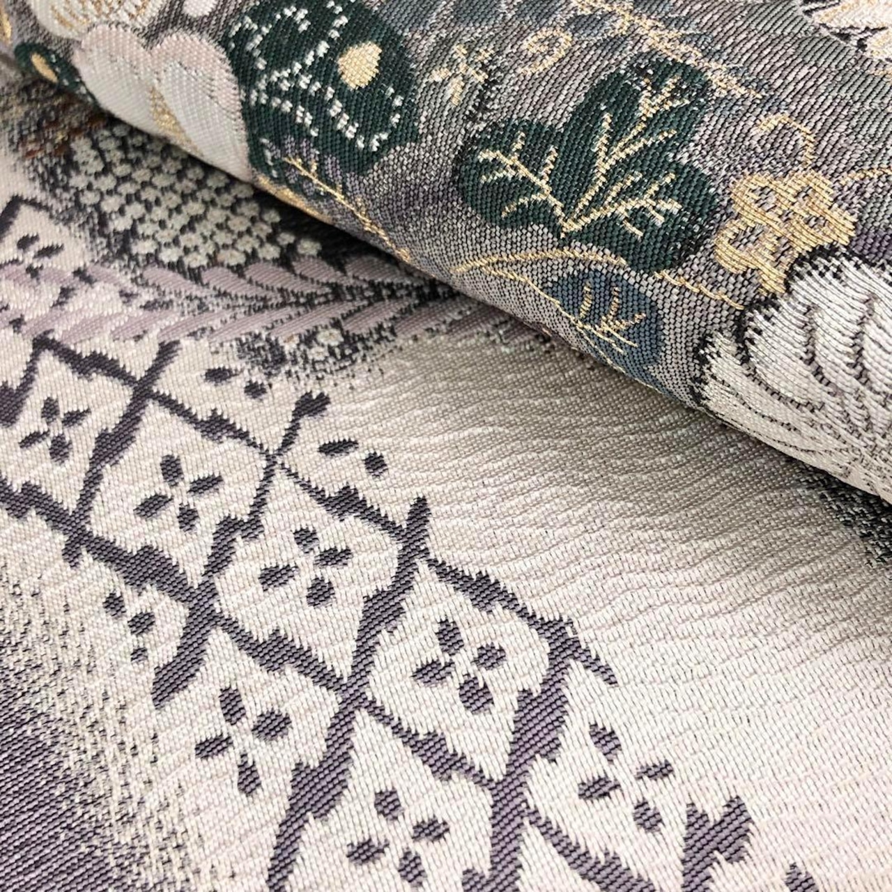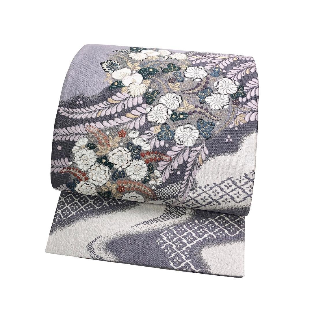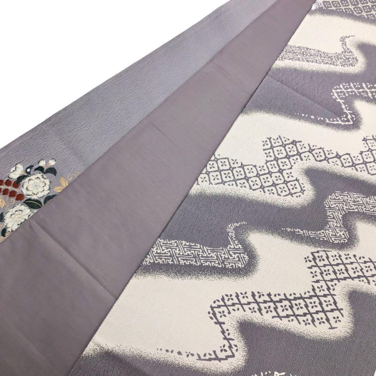 浅滅紫色ベースのお色味、さり気なく金銀糸を使った流水に辻が花柄の織模様がデザインされた素敵な柄裄のお品でございます。