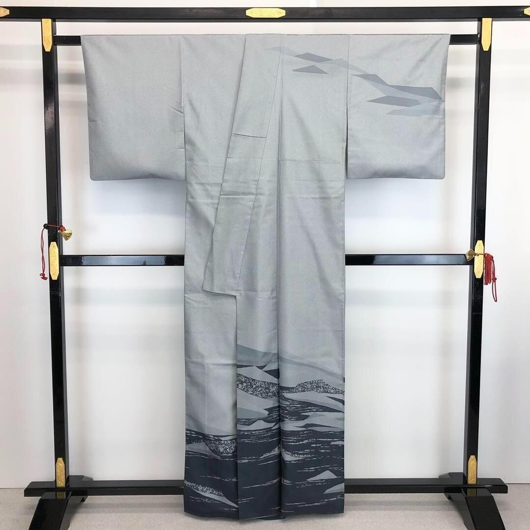 本場大島紬 付下げ 染大島 彩大島 証紙付 水銀色 ガード加工 K-3387 着物 きもの kimono 和服 和装 中古 リサイクル着物 【送料無料】