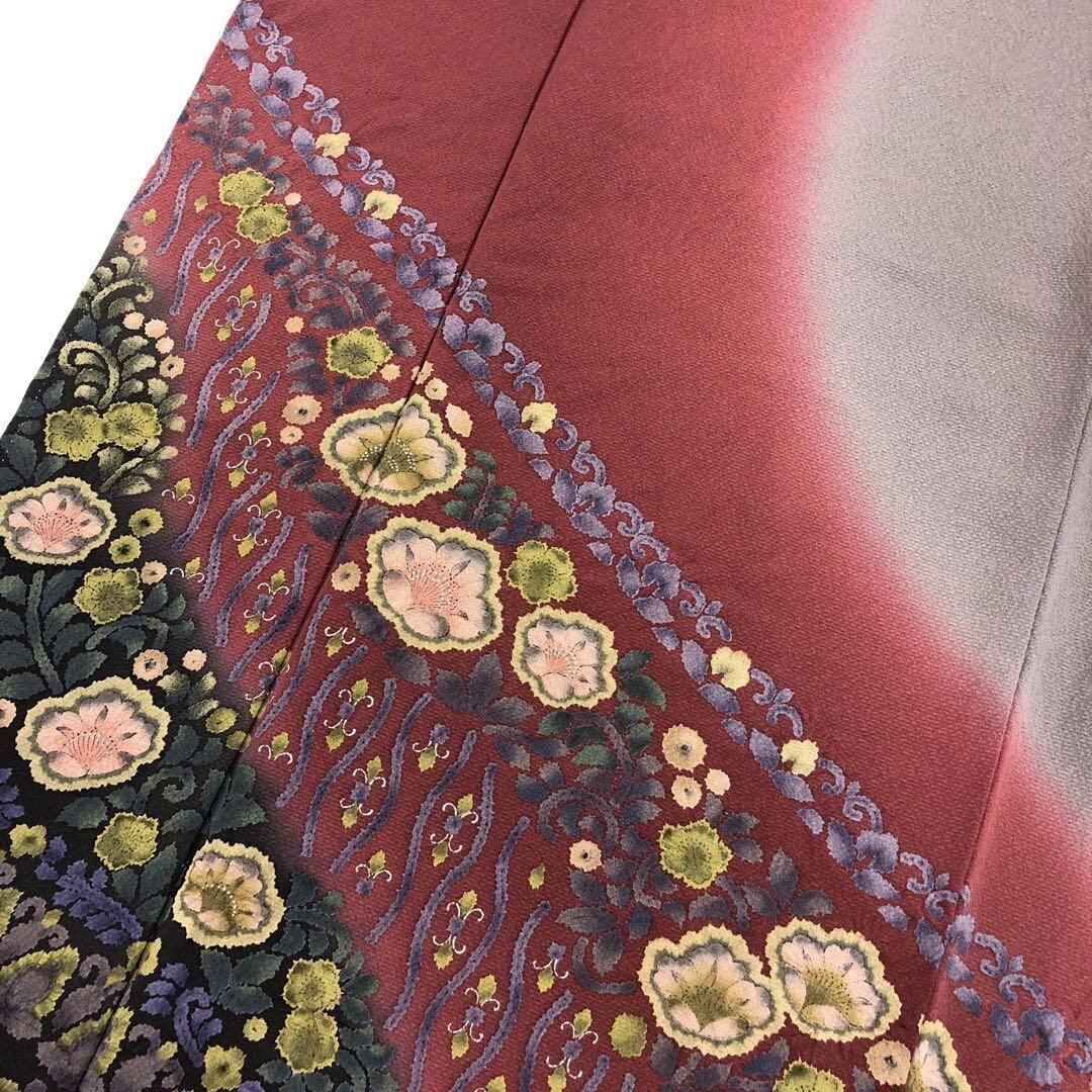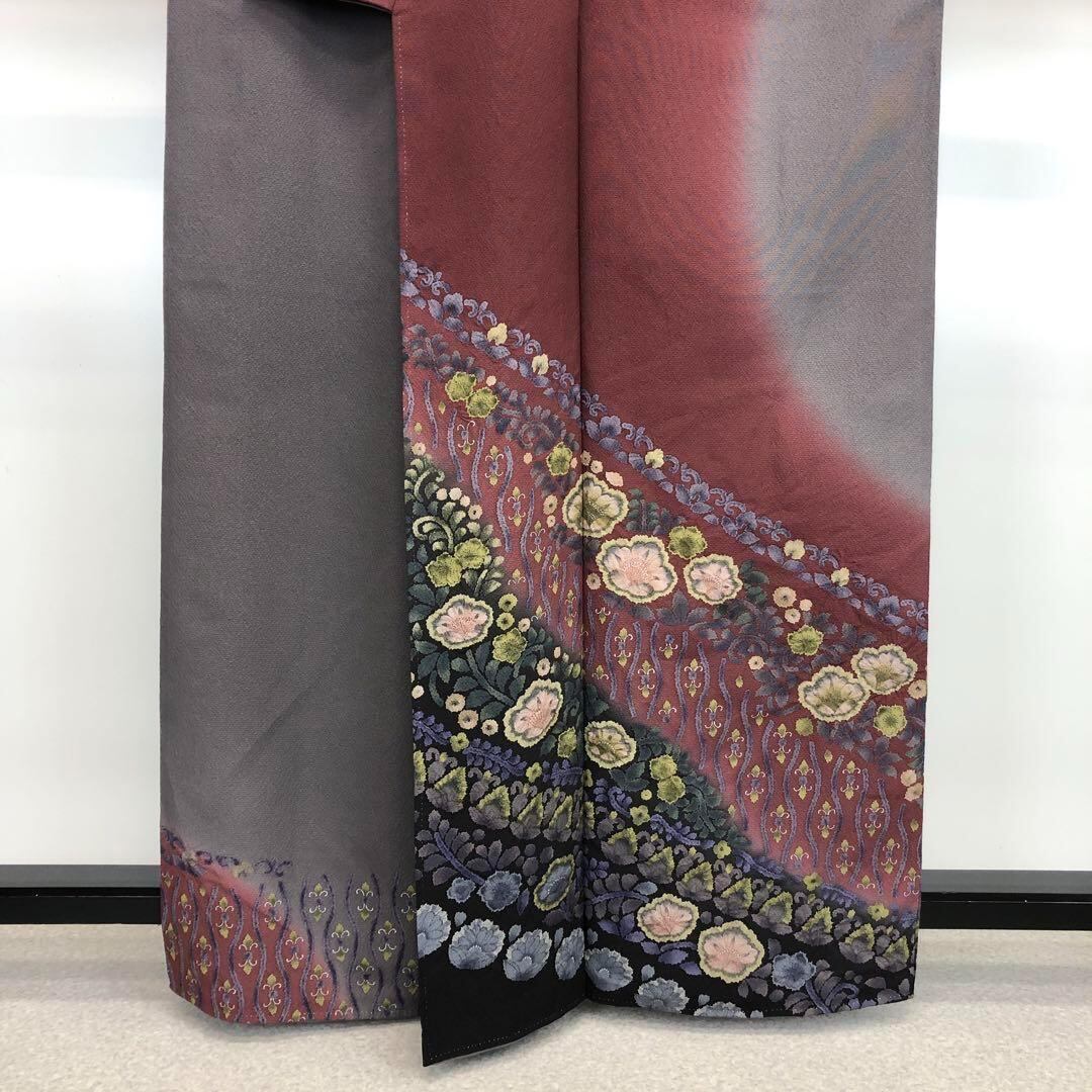 訪問着 美しい辻が花絞り 染分け 縮緬 燻銀色 K-3391 着物 きもの kimono 和服 和装 中古 リサイクル着物 【送料無料】