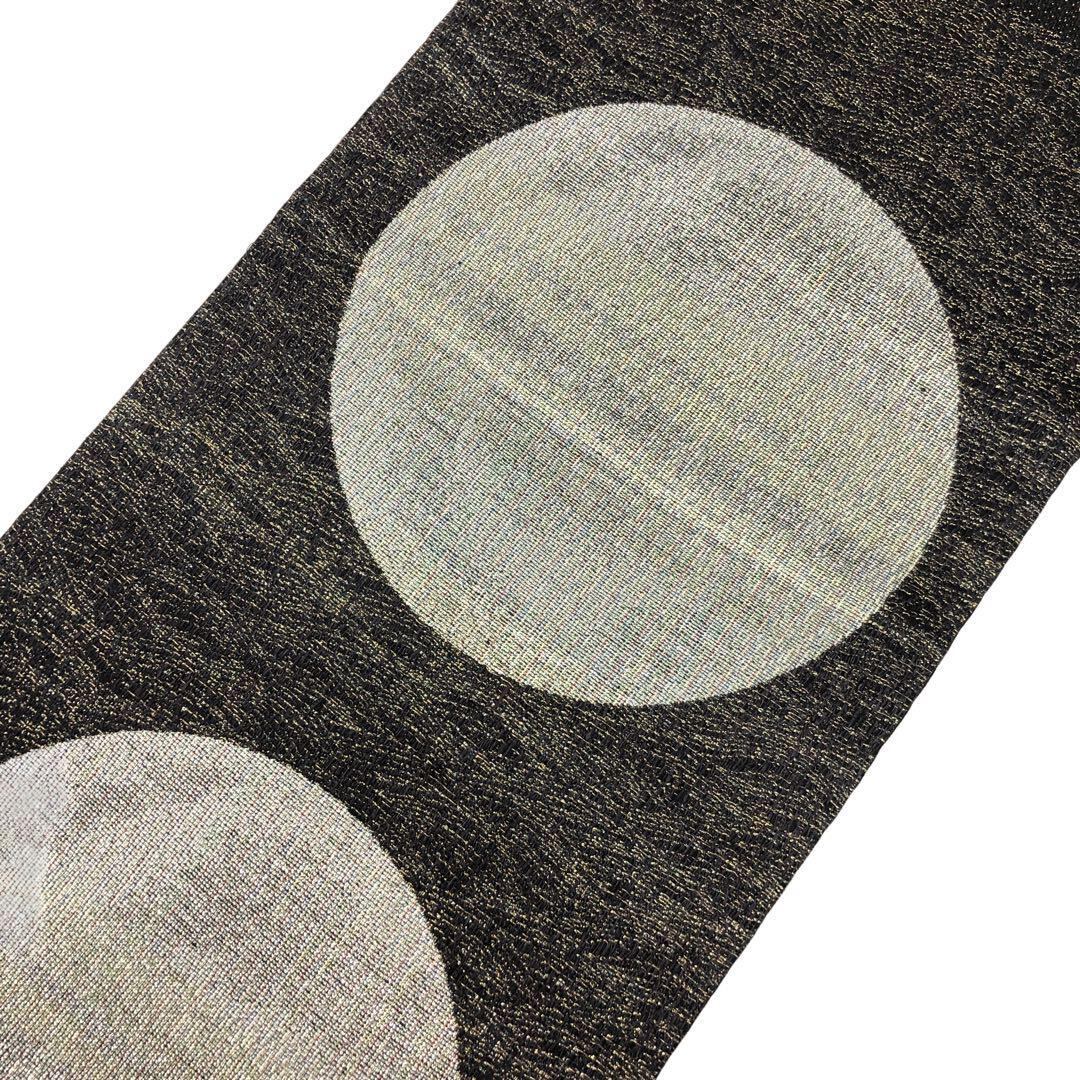 袋帯 リバーシブル モダンな満月柄 三日月 月の満欠け 金糸 黒色 O-3302