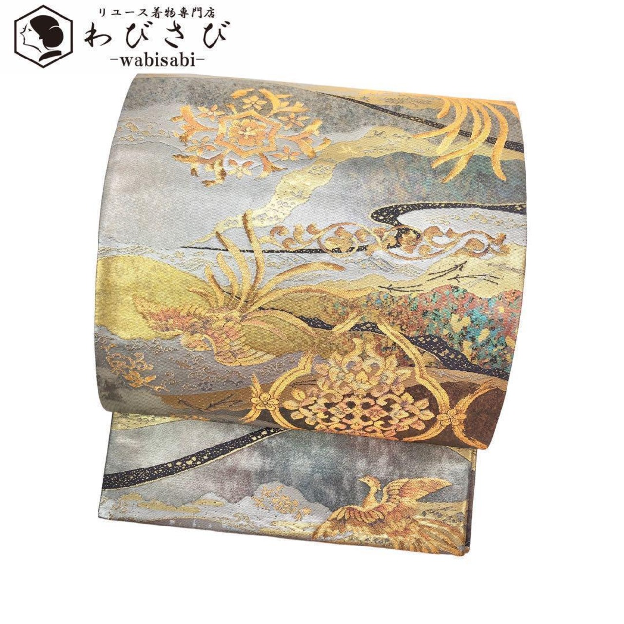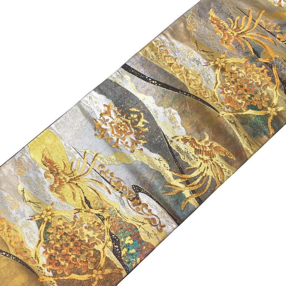 鳳翔綾重と題された美しい飛翔する鳳凰に華柄模様、金銀糸の使われた煌びやかなデザインの素敵なお品でございます。