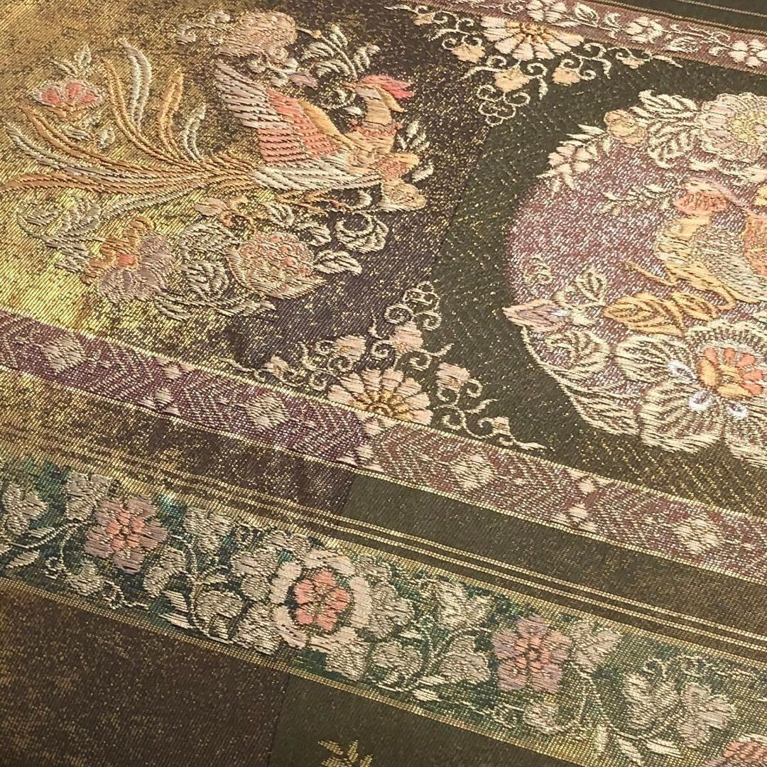 袋帯 飛翔讃歌文 丸に煌びやかで美しい華柄模様 鳳凰 蝶々 金銀糸 O-3289 着物 きもの kimono 和服 和装 中古 リサイクル着物 【送料無料】
