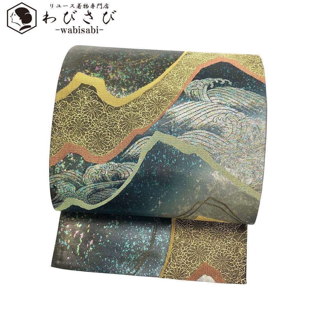 袋帯 煌びやかな波柄 花柄模様 オーロラ箔 金銀糸 O-3301