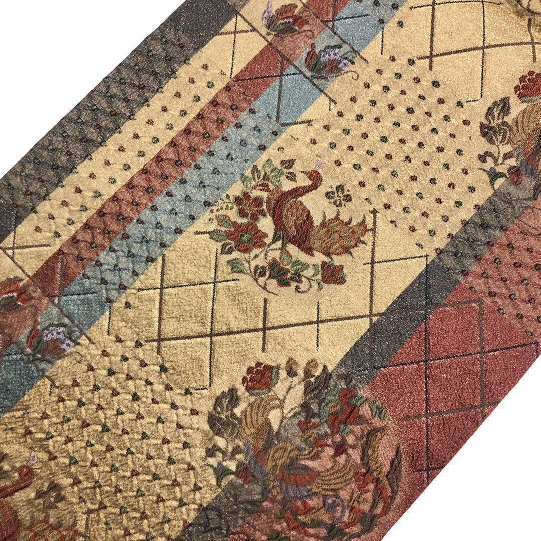 華志保里と題されたくすみカラーの落ち着いたお色味に金通し、縦縞模様に立体感のある鳥に花柄、蝶々などの柄行がデザインされた素敵な柄裄のお品でございます。