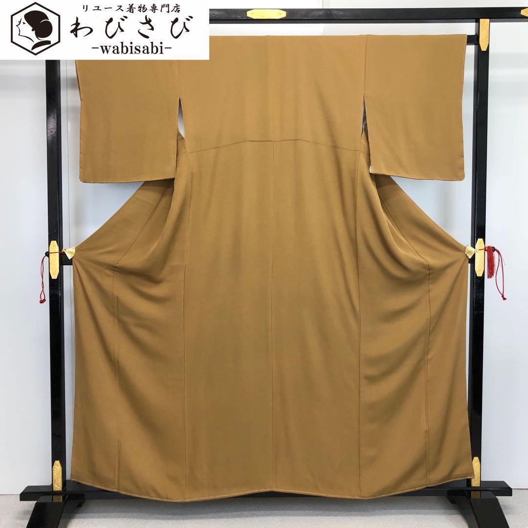 落ち着きのある黄茶色のお色味の手触りの良い縮緬の素敵なお品でございます。