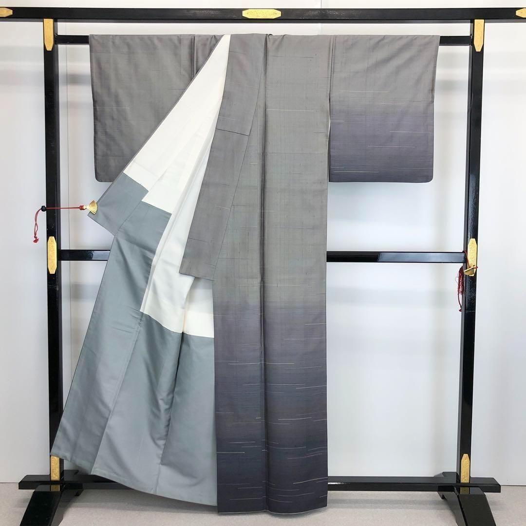 付下げ 漢方草木染 紬 グラデーション 横縞織模様 K-3405 着物 きもの kimono 和服 和装 中古 リサイクル着物 【送料無料】
