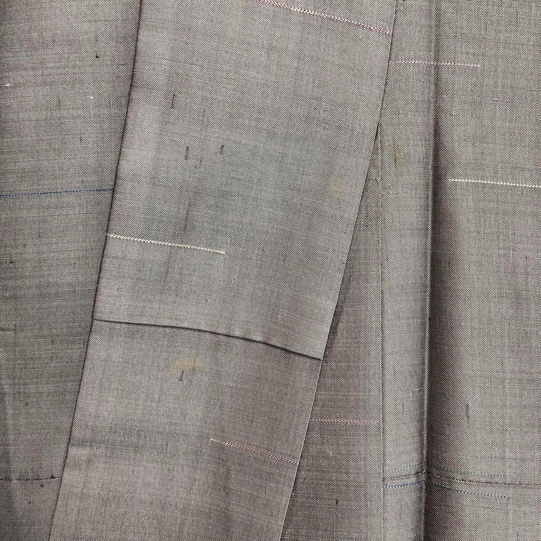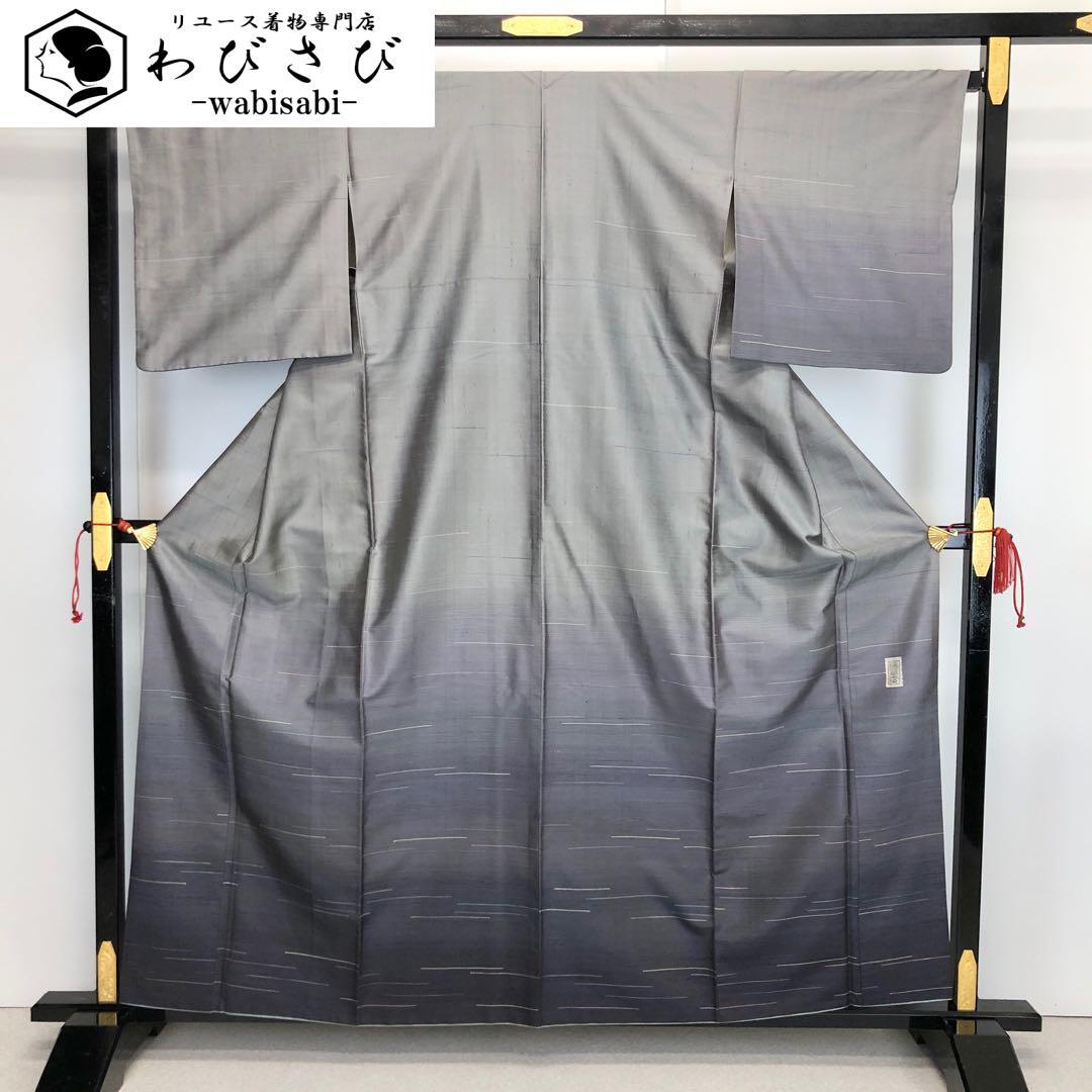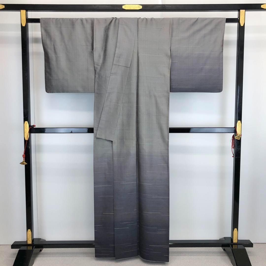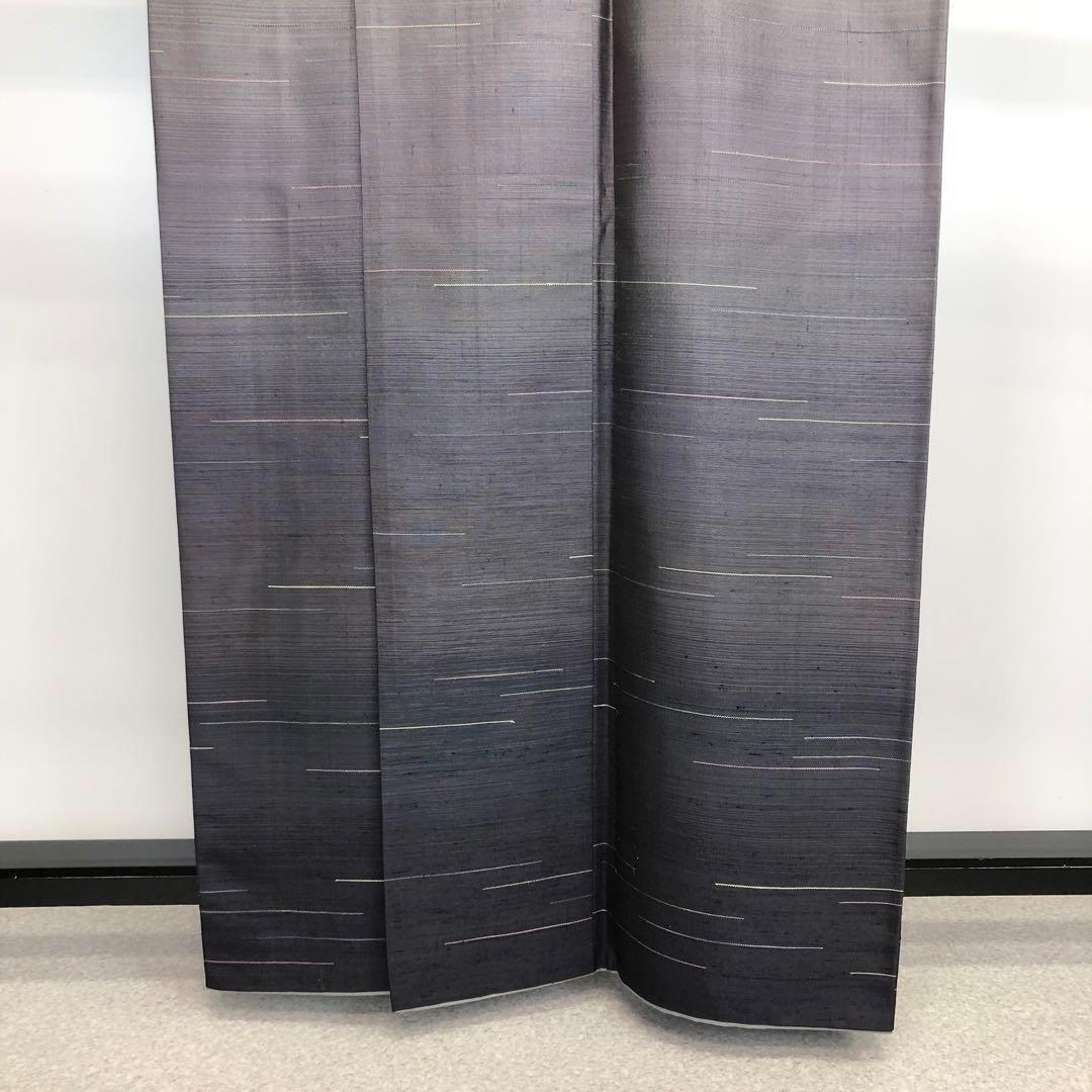 漢方草木染の紬地に美しいグラデーションの色彩に横縞の織模様がデザインされたすっきりとした品のあるお品でございます。