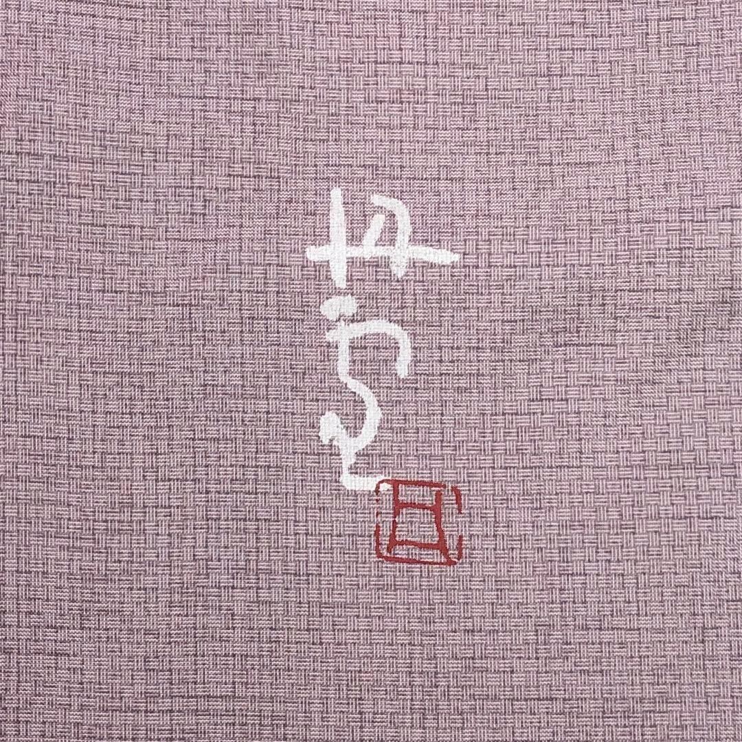 葡萄染色のお色味にモダンな抽象柄模様がデザインされた素敵な柄裄のお品でございます。