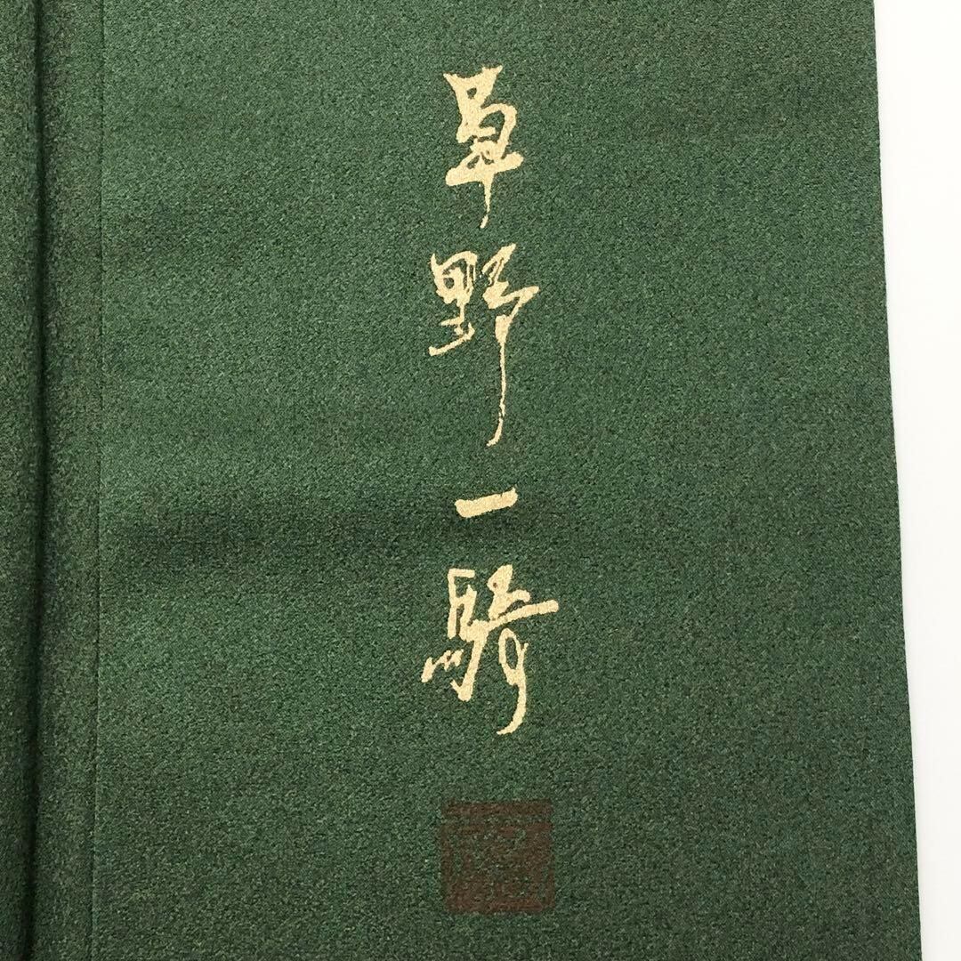 付下げ 草野一騎 枝に鳥 藤の花 金彩 千歳緑色 K-3431