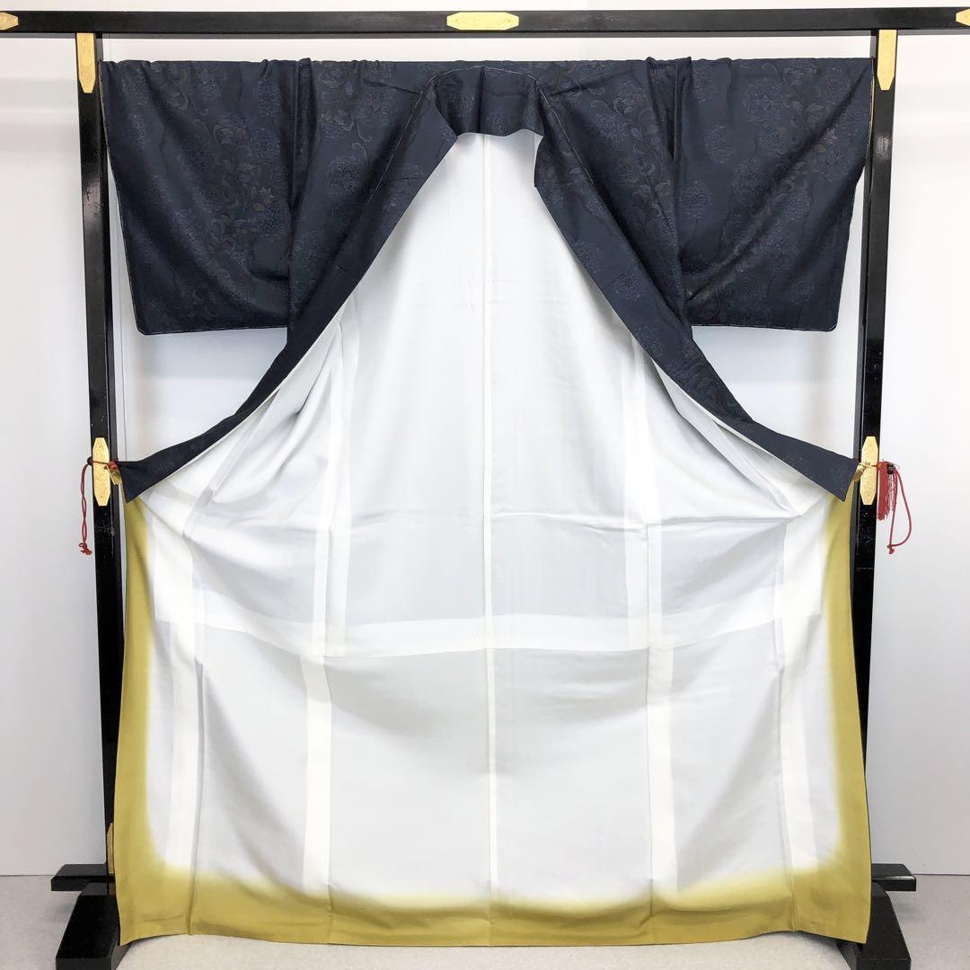 横双絣の藍泥染、色味の良い藍色のお色味に美しい花柄模様がデザインされた素敵な柄裄のお品でございます。