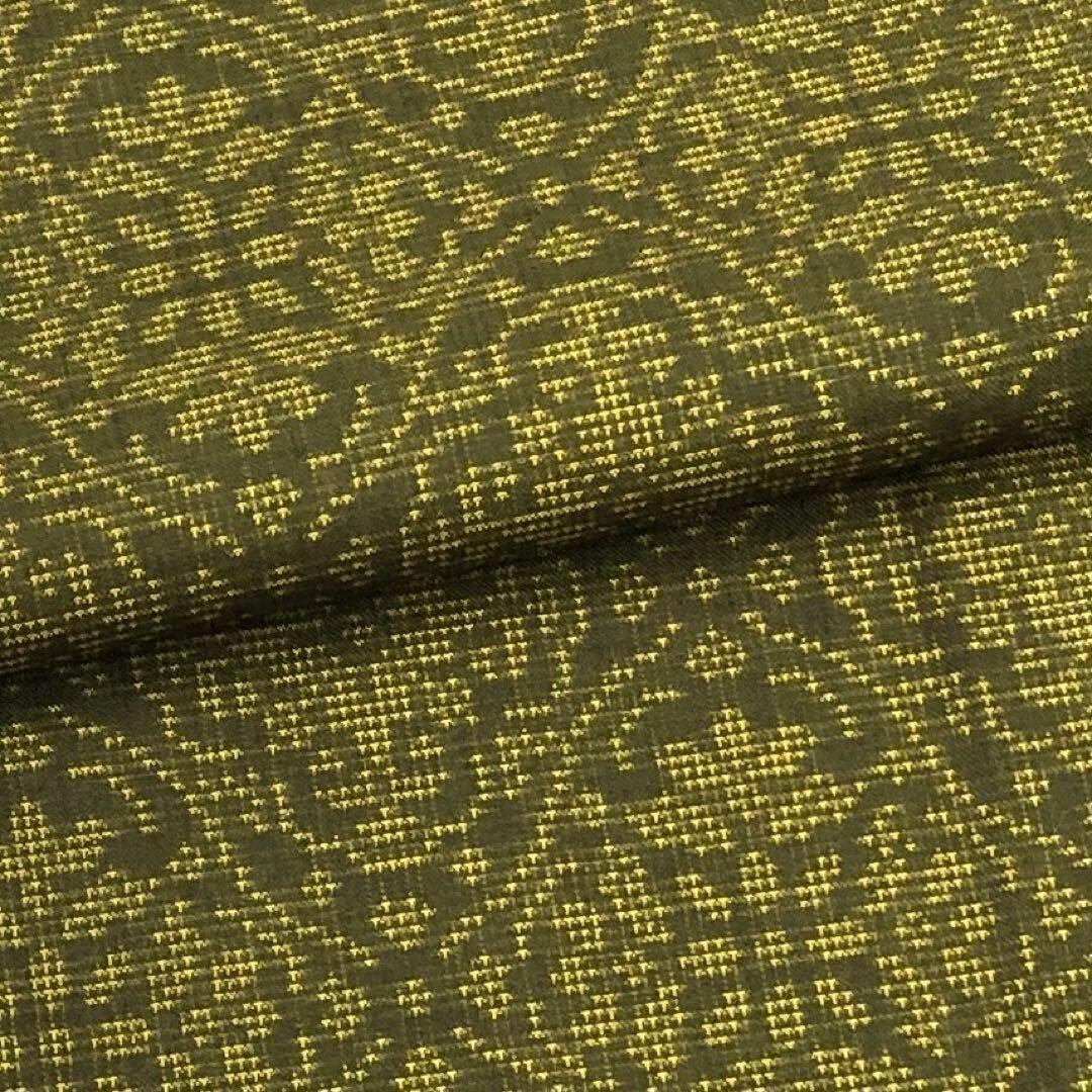 希少な奄美うこんを使った蜷色に近い独特の色味の美しい薬草染に花柄模様の織柄がデザインされた素敵なお品でございます。