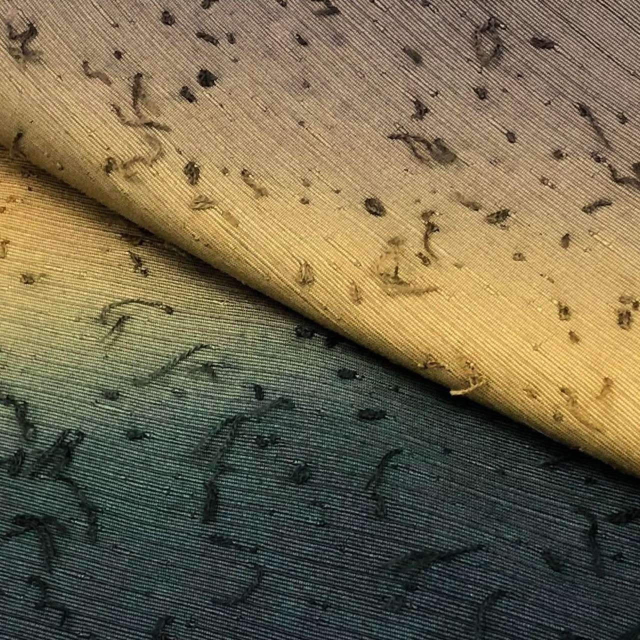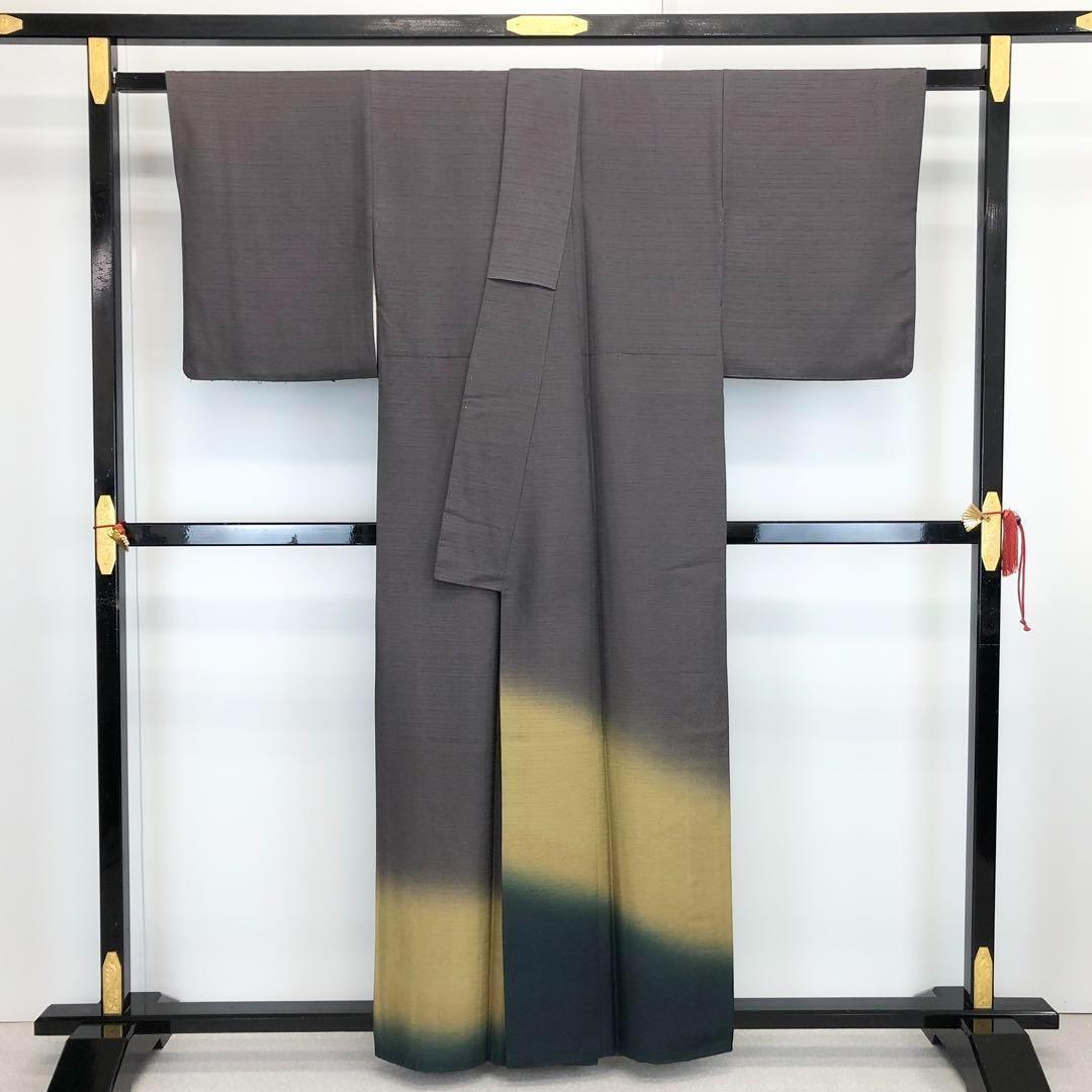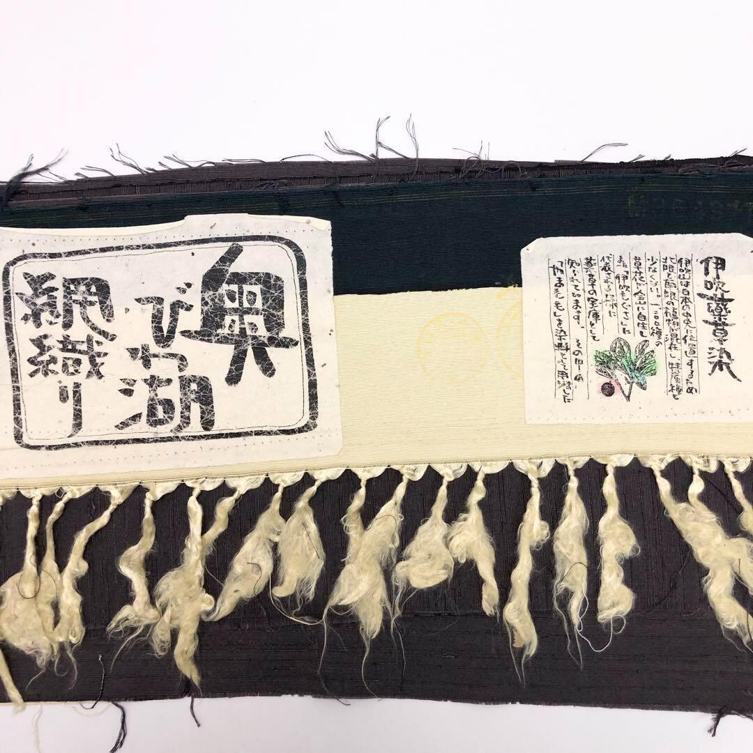 奥びわ湖綱織り、伊吹薬草染の黝色ベースにグラデーションのお色味、ひげ紬の雰囲気の良い上質な紬地のお品でございます。
