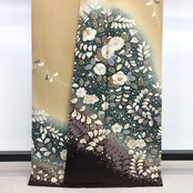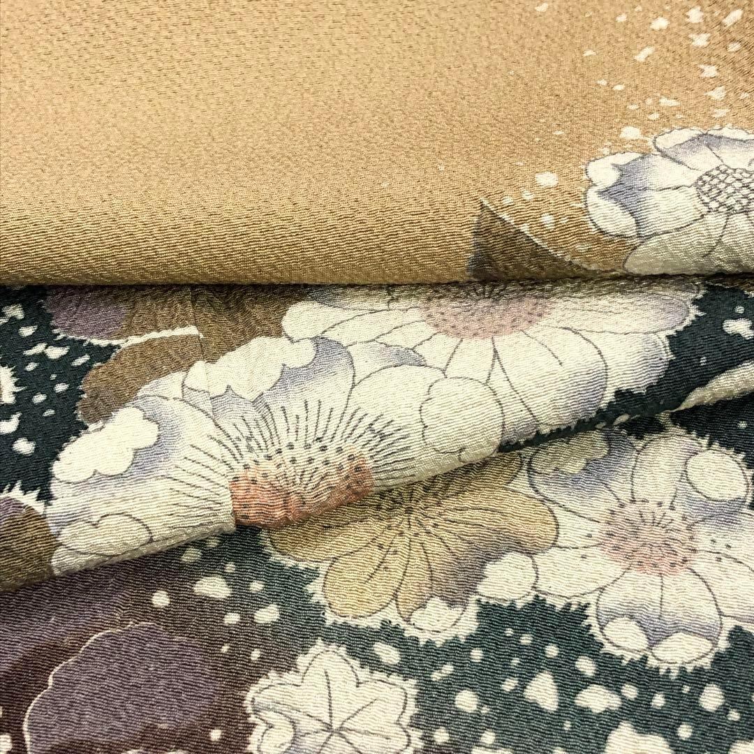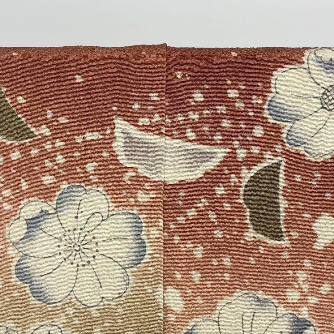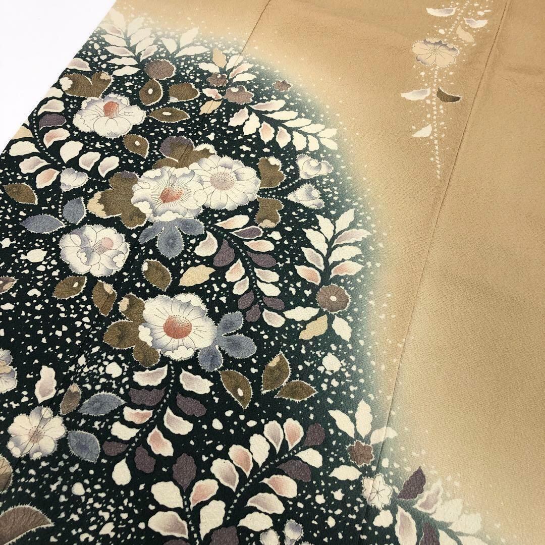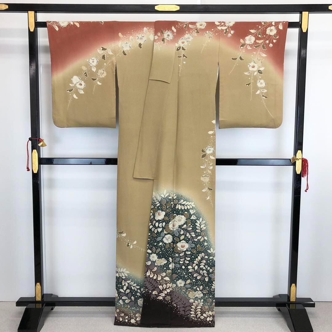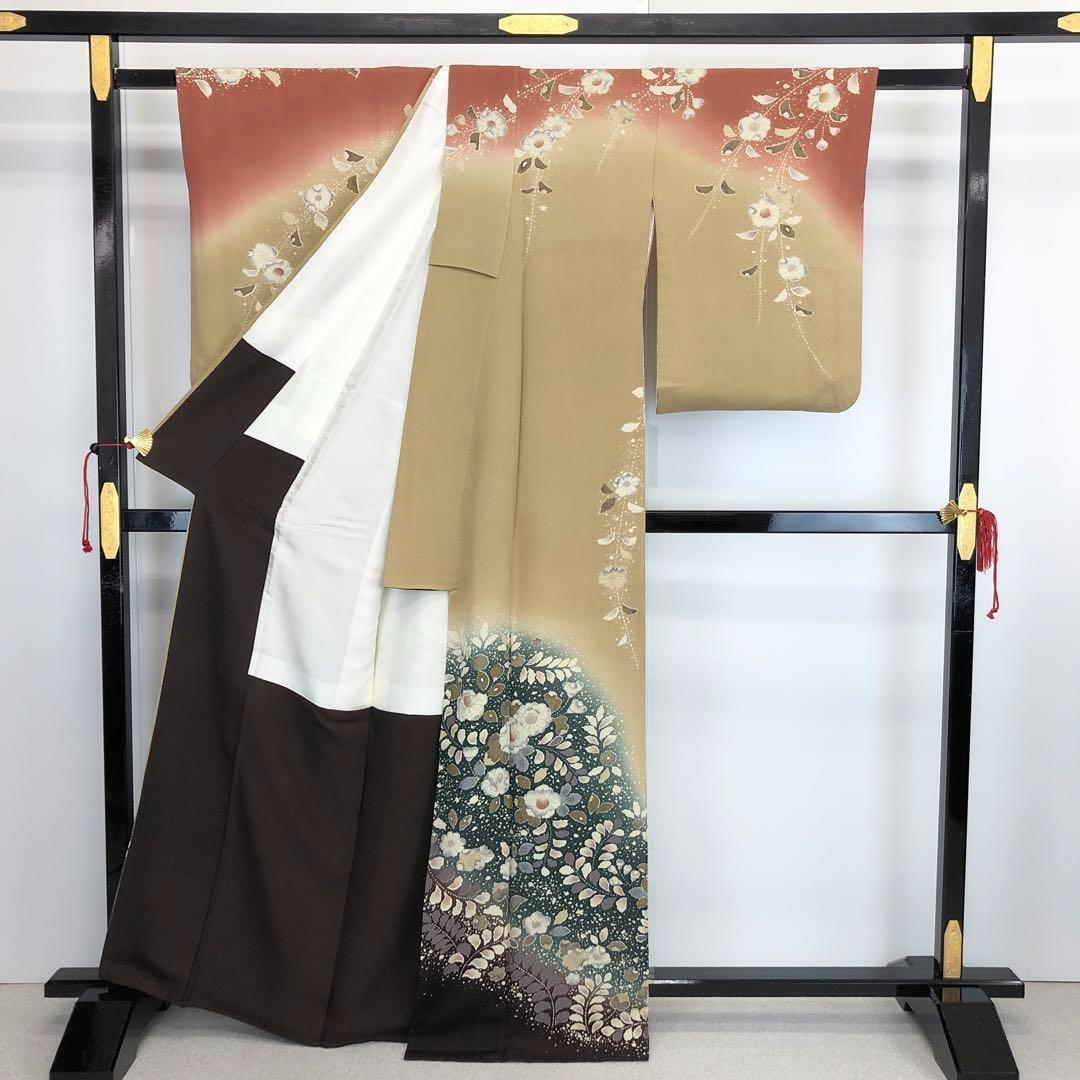 楊梅色の落ち着きのあるお色味に暈し、美しい辻が花絞りの柄裄がデザインされた染柄の素晴らしい素敵なお品でございます。