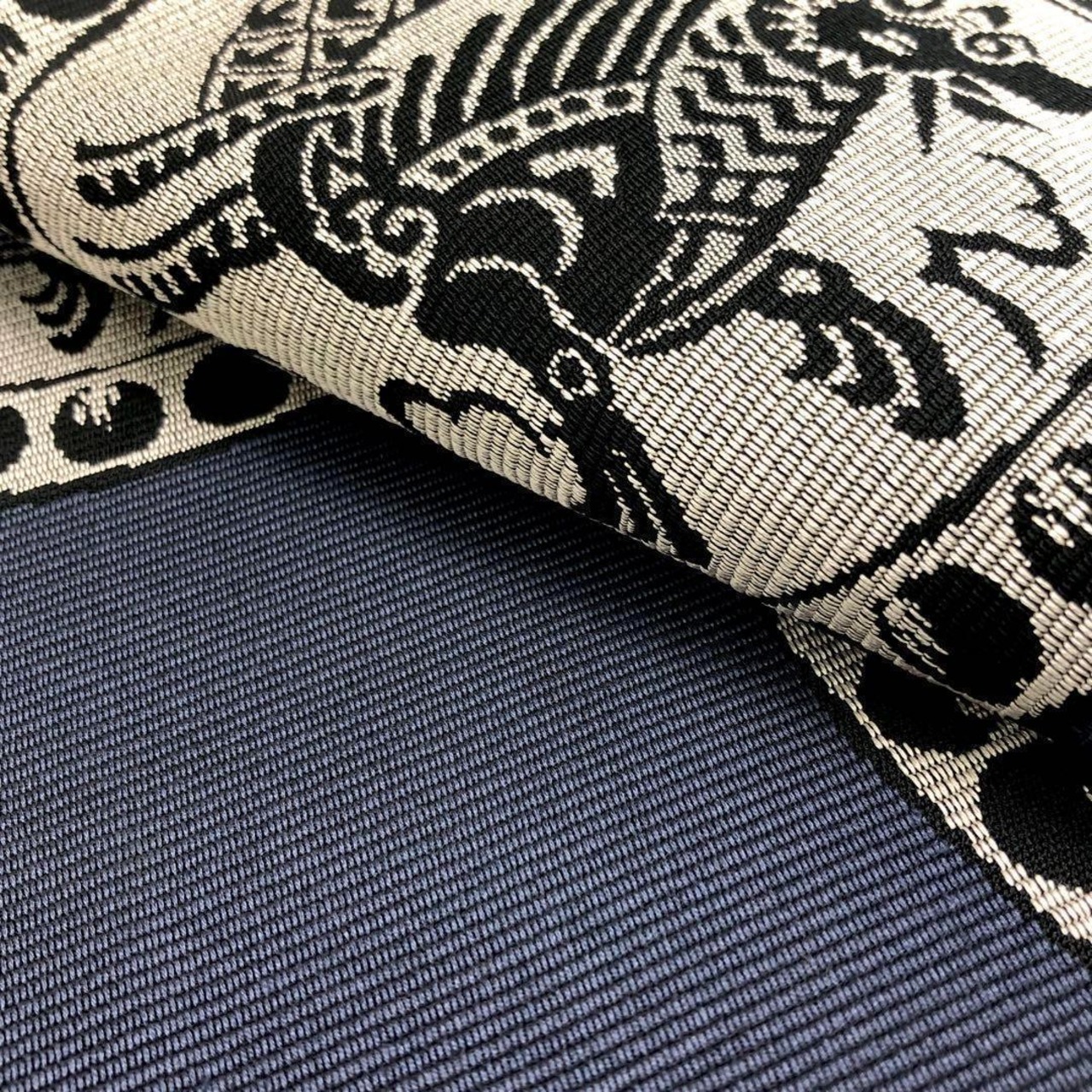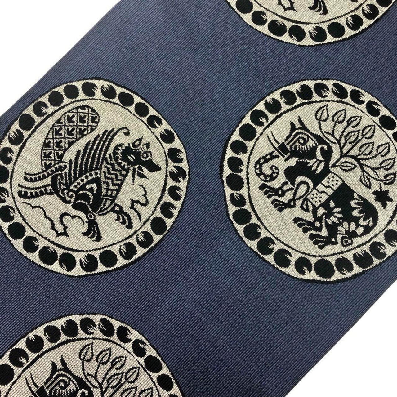 袋帯 丸の中に抽象動物柄 鉄葡萄色 O-3418