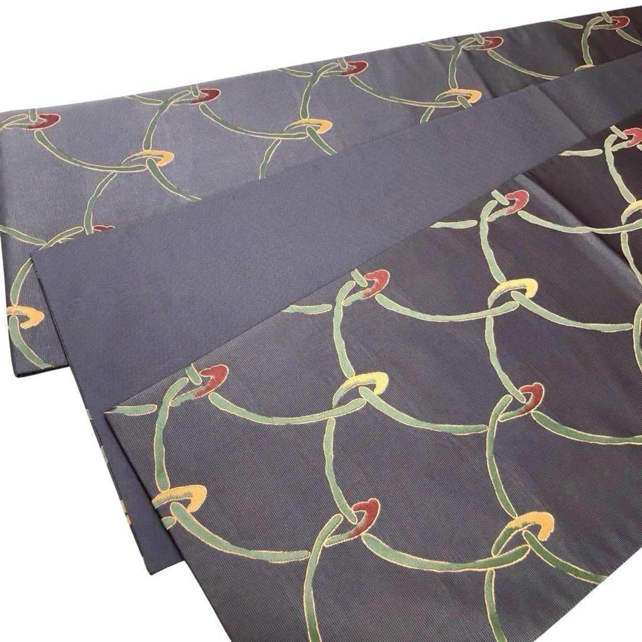 袋帯 西陣織 赤と黄色の抽象織模様 勝軍色 O-3425