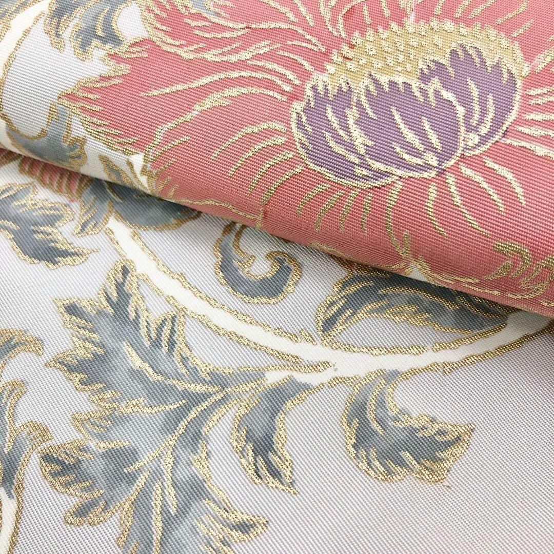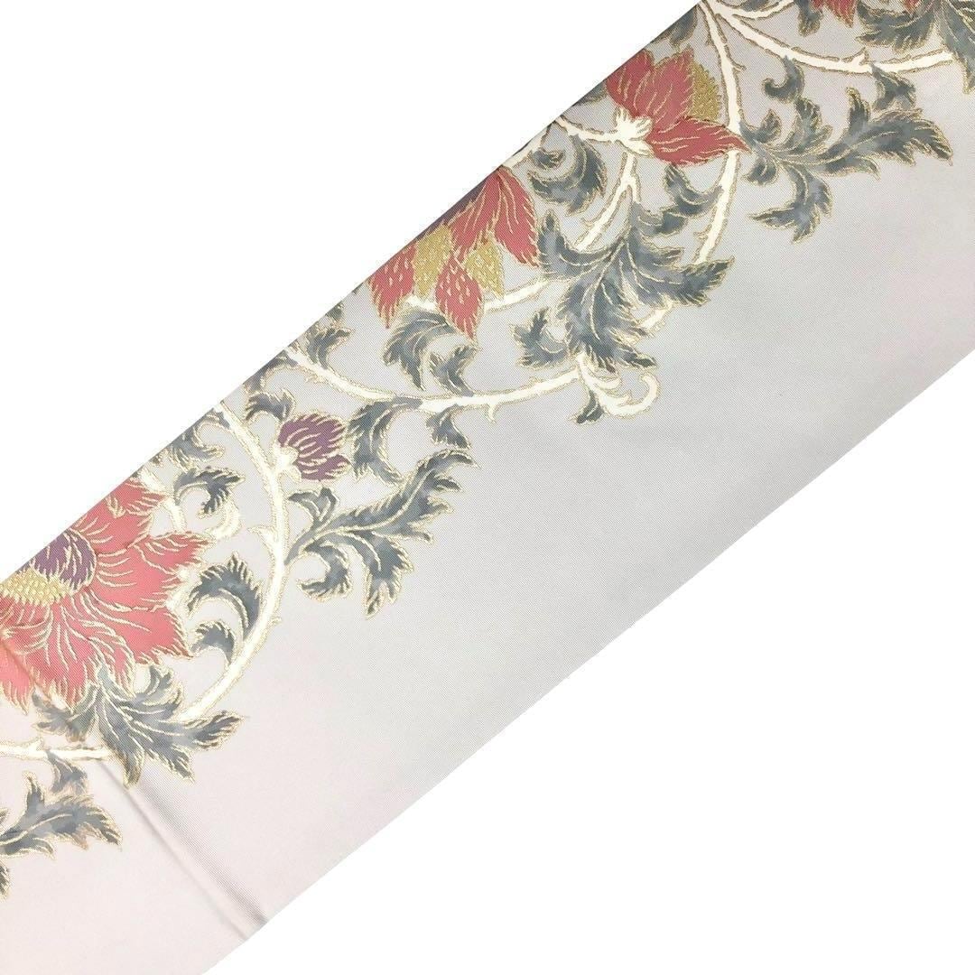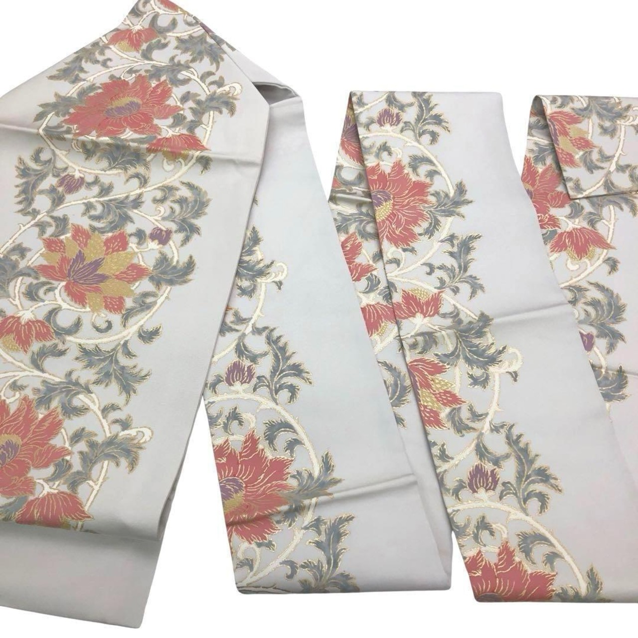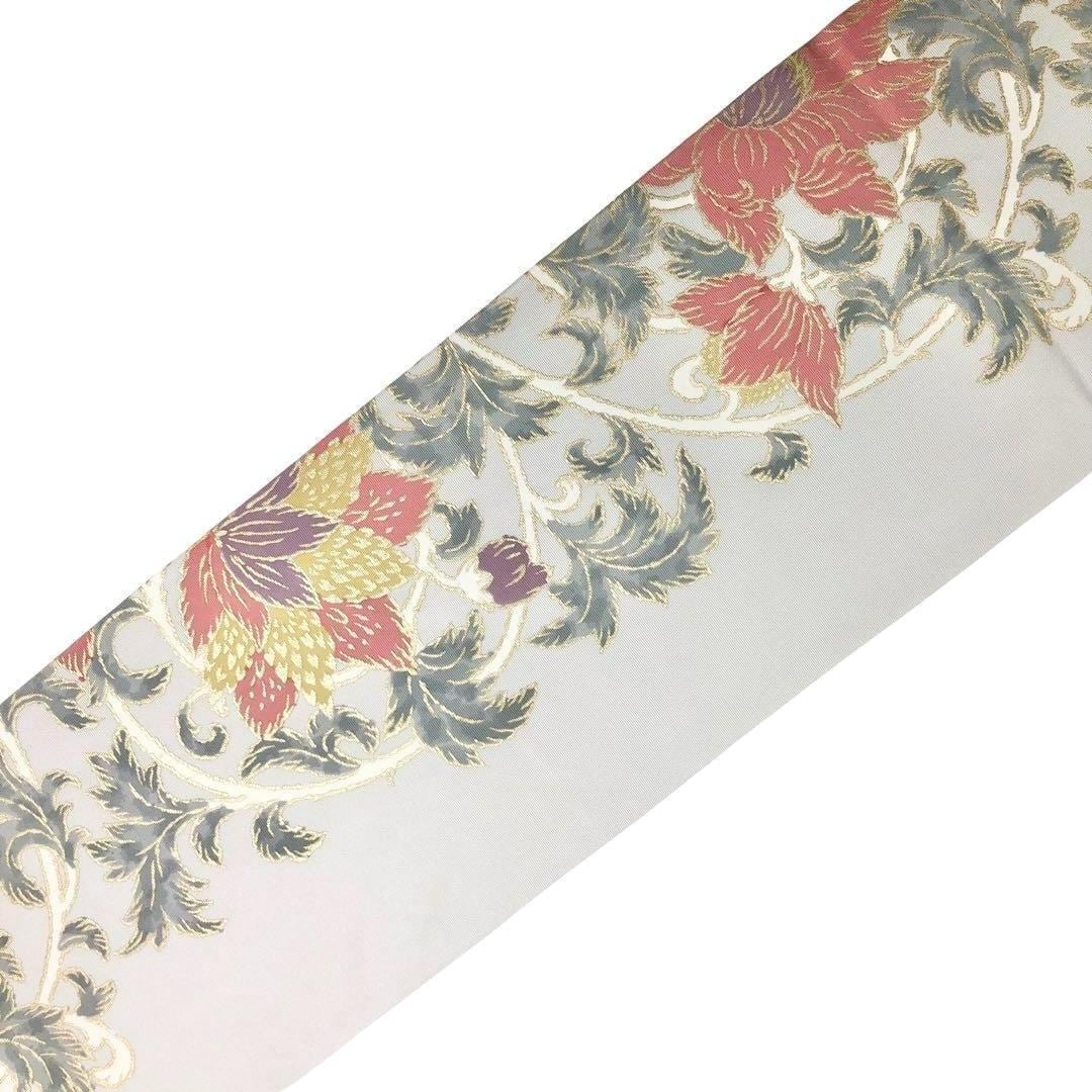 灰白色のお色味に金彩で煌びやかな雰囲気の花唐草模様がデザインされた素敵な柄裄のお品でございます。