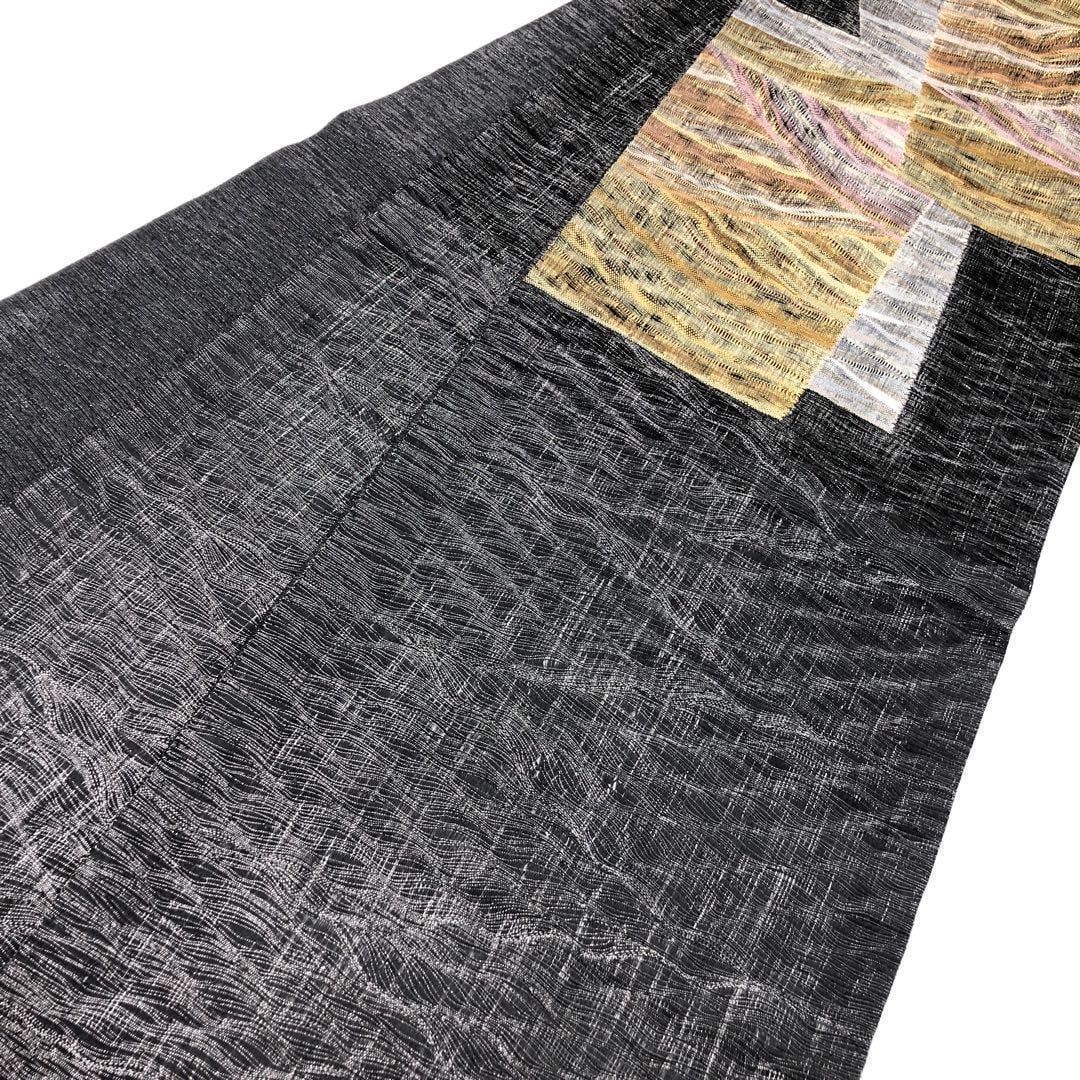 黒色のすくい織に金銀糸がさり気なく使われたモダンな抽象模様がデザインされた素敵な柄裄のお品でございます。