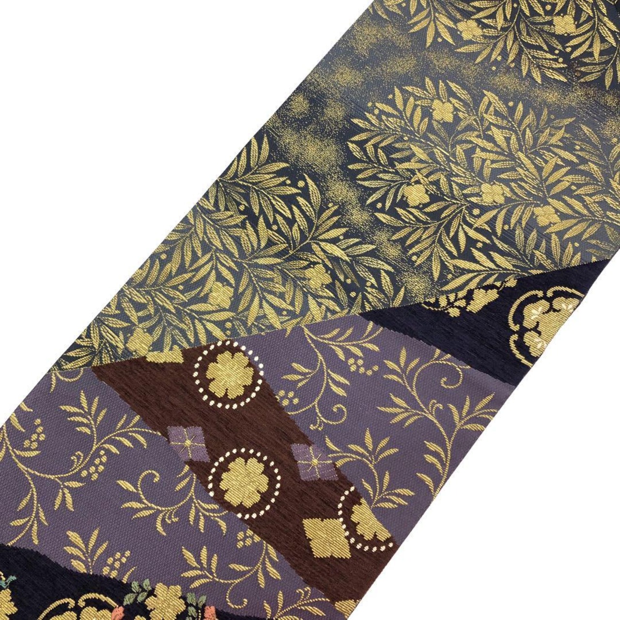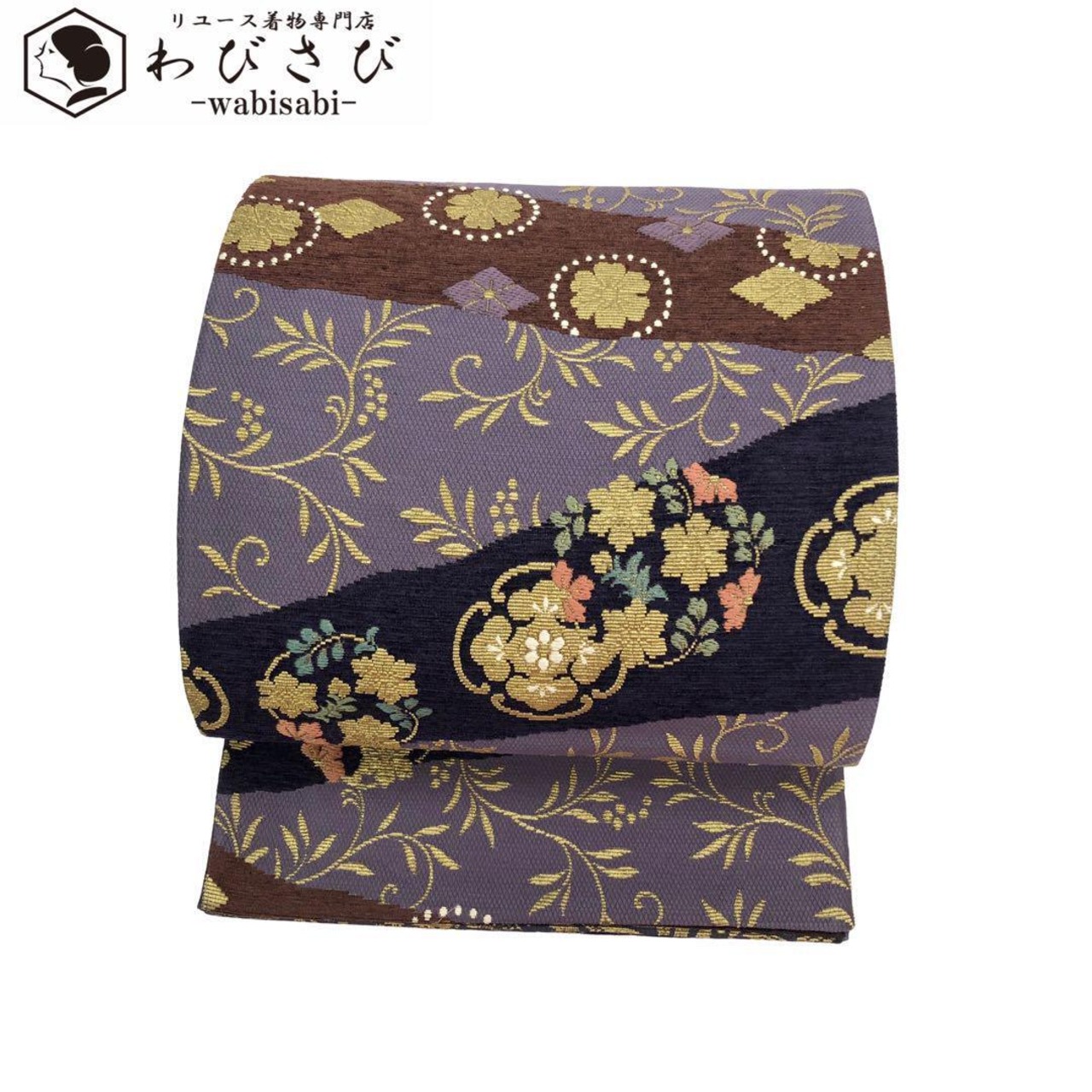 袋帯 金華山織双図全通 四面リバーシブル 花唐草模様 金糸 紫苑色 O-3368