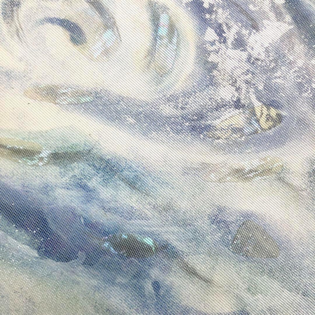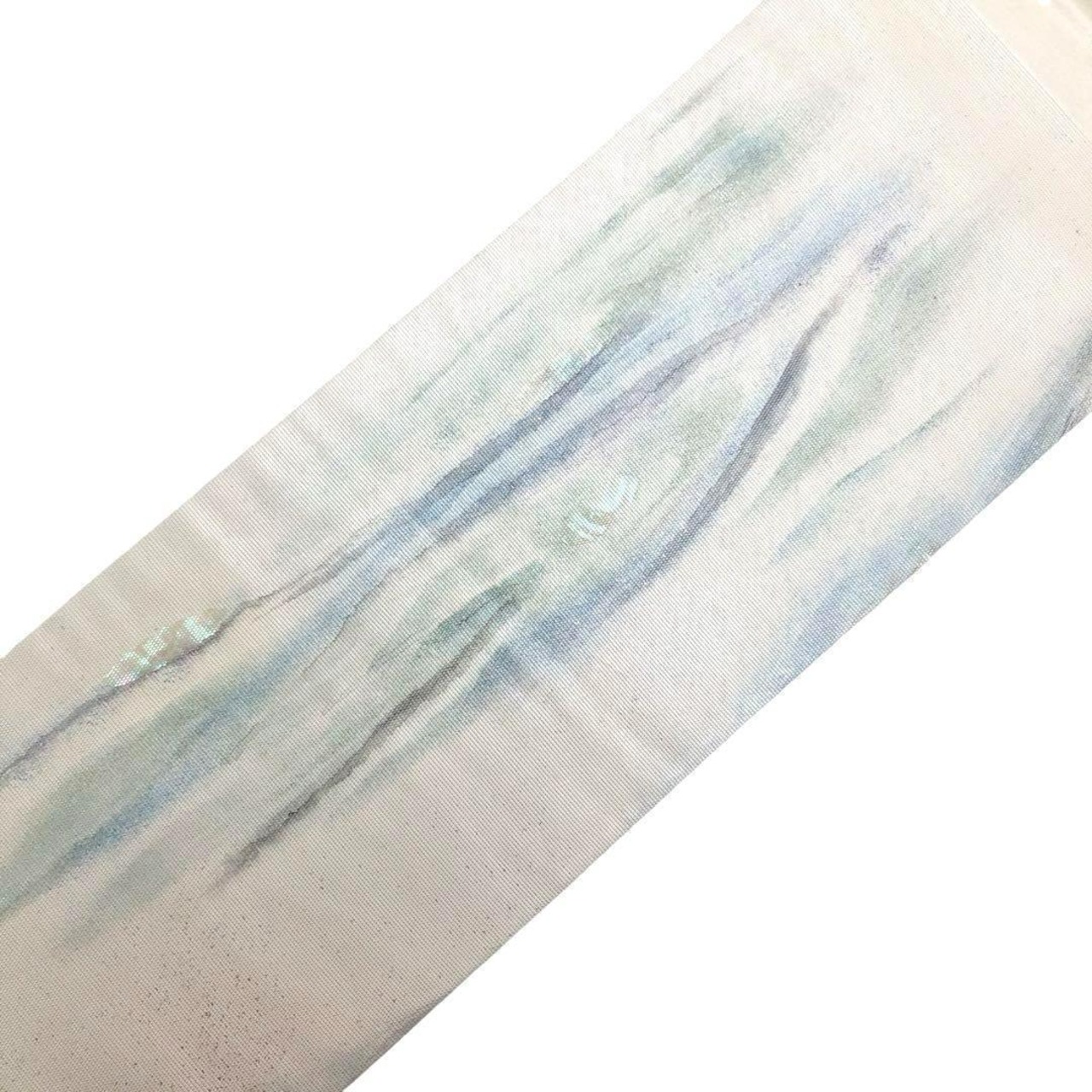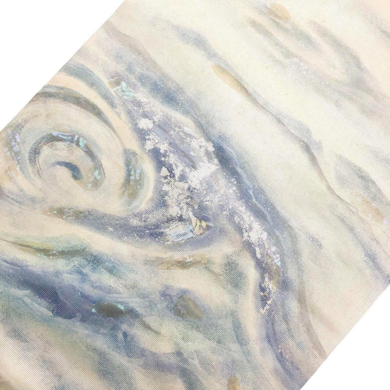 名古屋帯 美しい螺鈿に波渦模様 銀彩 乳白色 O-3345
