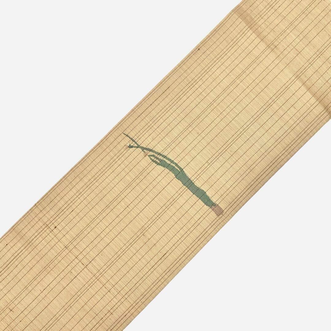 名古屋帯 紬 縦縞模様 葱柄 ネギ 野菜 麦藁色 O-3362