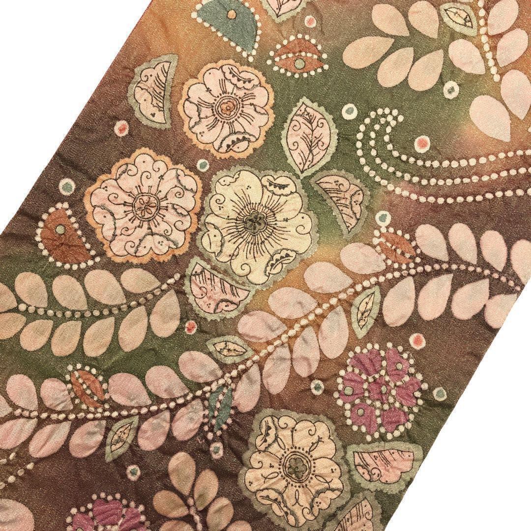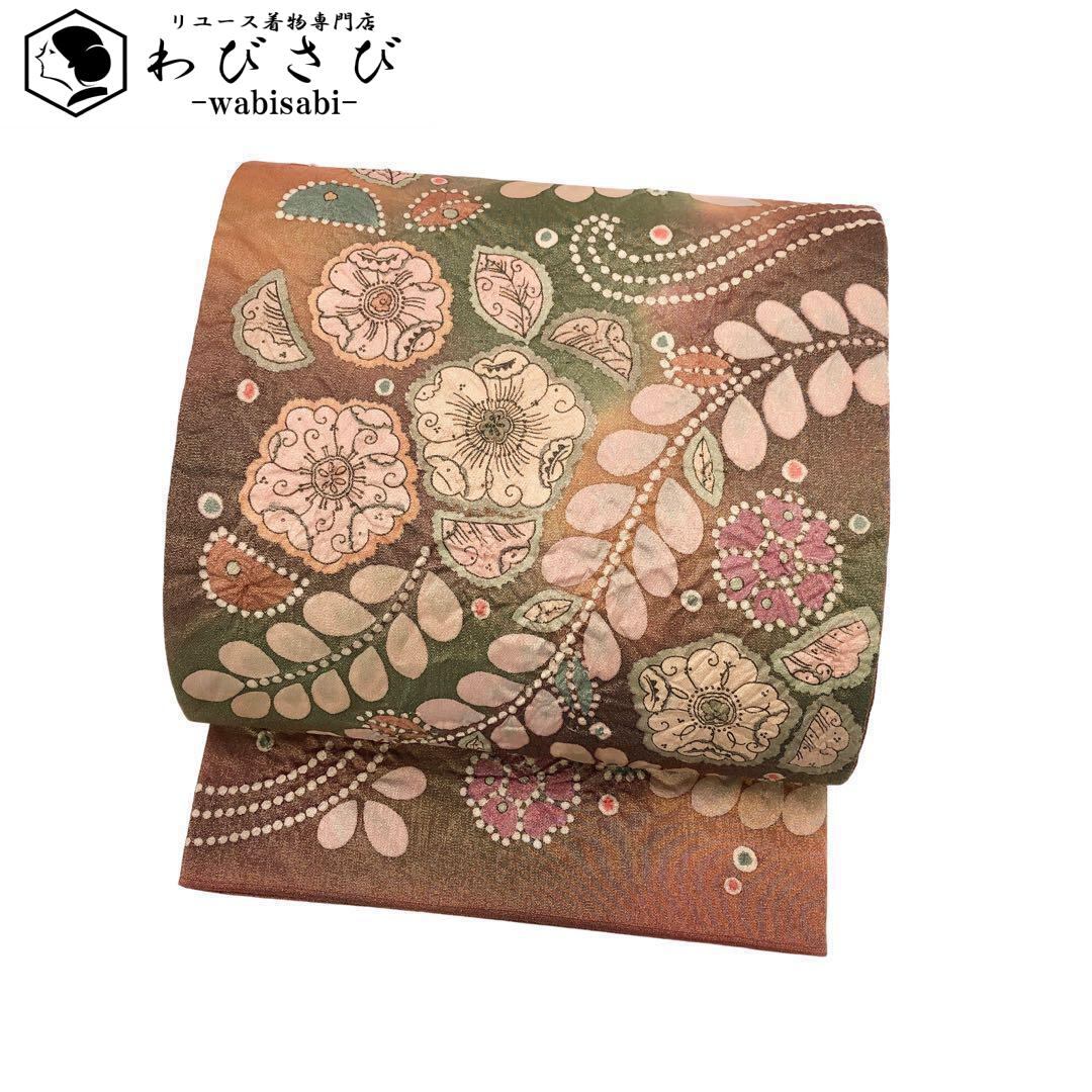 袋帯 美しい辻が花模様 金通し 作家物 暈し 真朱色 O-3364 着物 きもの kimono 和服 和装 中古 リサイクル着物 【送料無料】