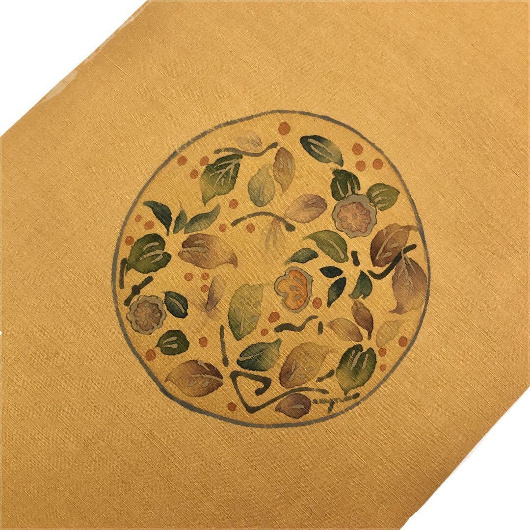 名古屋帯 型染 丸に花草模様 紬 枇杷茶色 O-3347