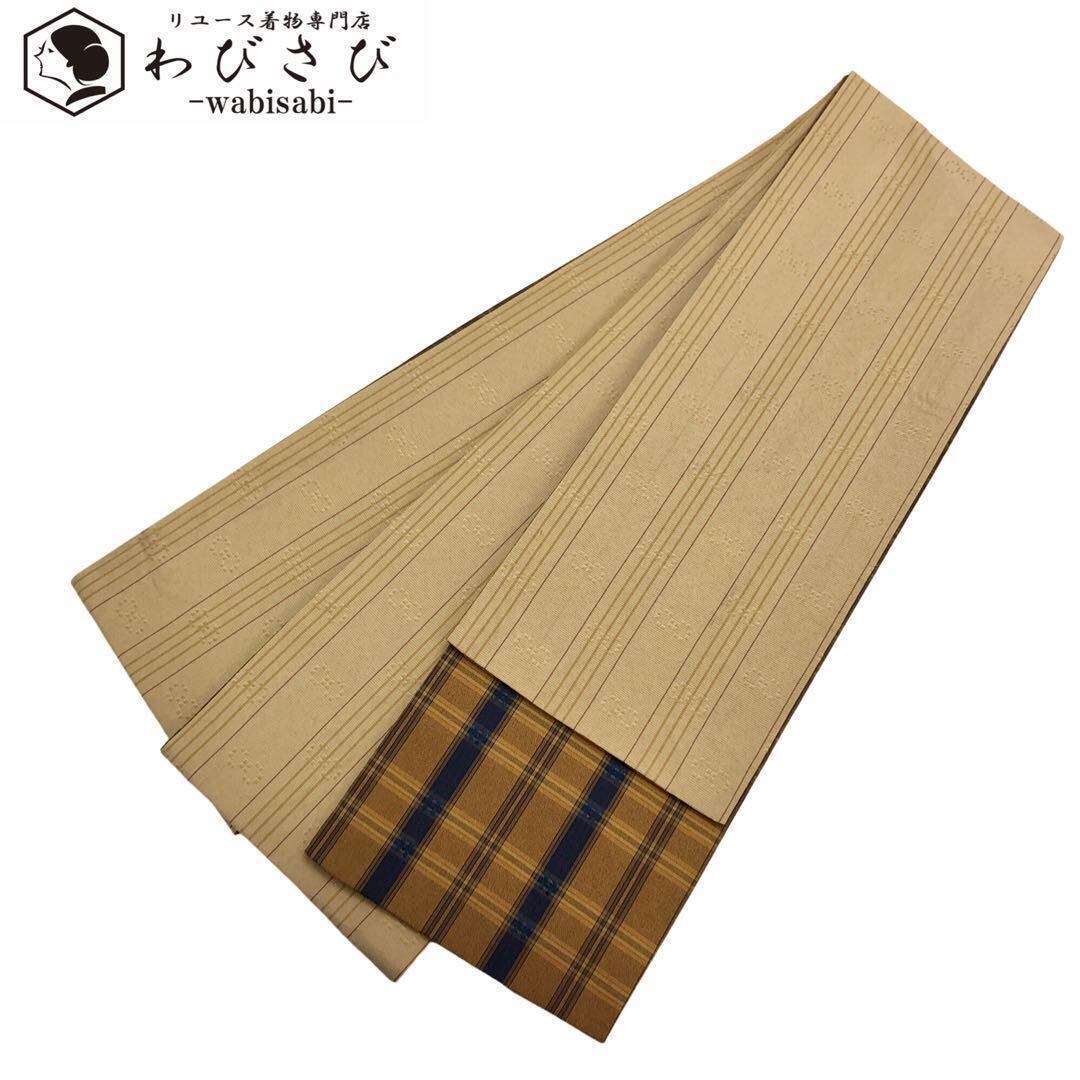 半幅帯 リバーシブル 格子柄に花織模様 チェック柄 枯野色 O-3320