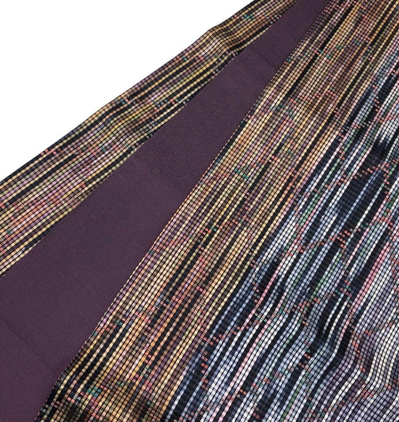 檜垣柄の縦柄織模様、色彩の美しい素敵な織模様のお品でございます。