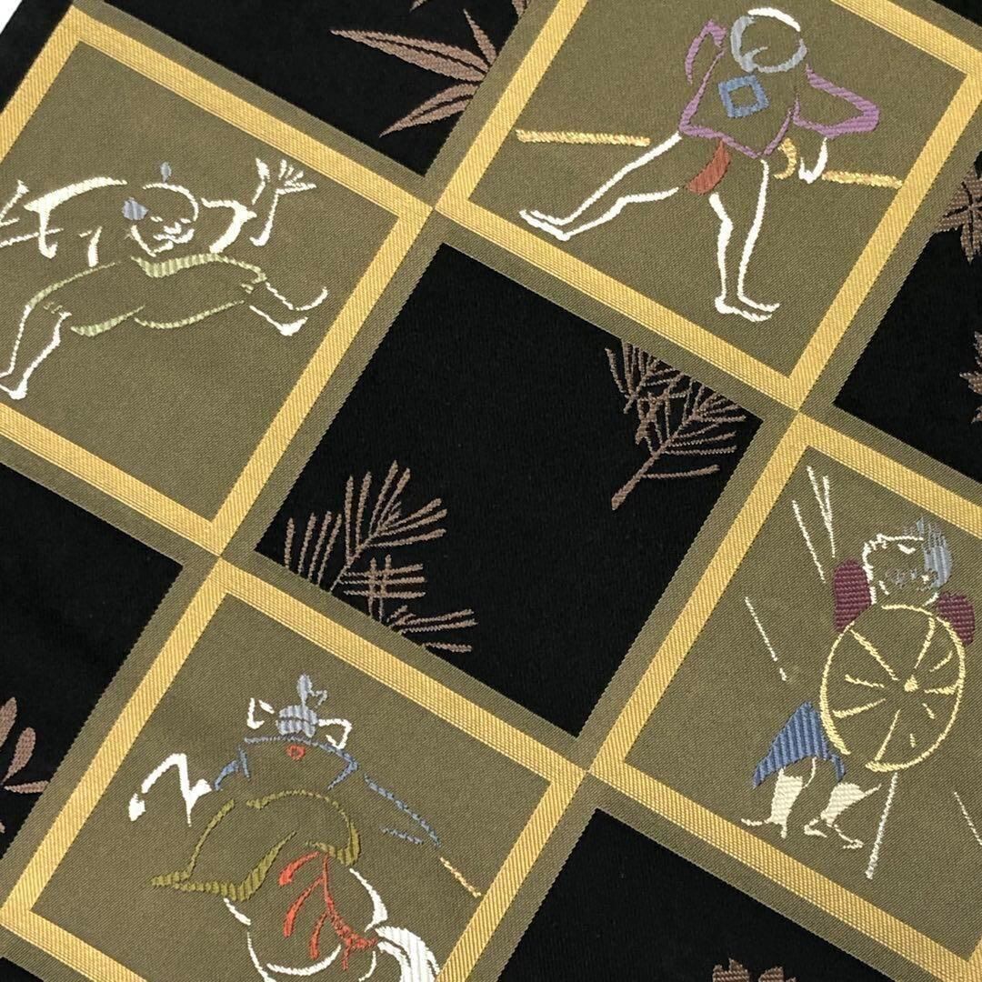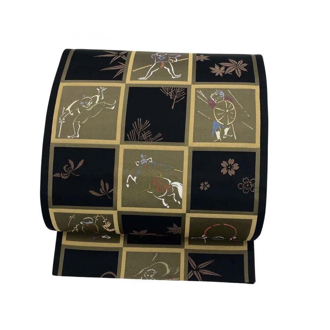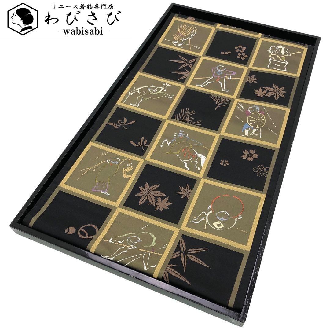 袋帯 西陣聚楽 逸品集 聚楽糸 格子柄に多様な柄裄 黒色 O-3408 着物 きもの kimono 和服 和装 中古 リサイクル着物 【送料無料】