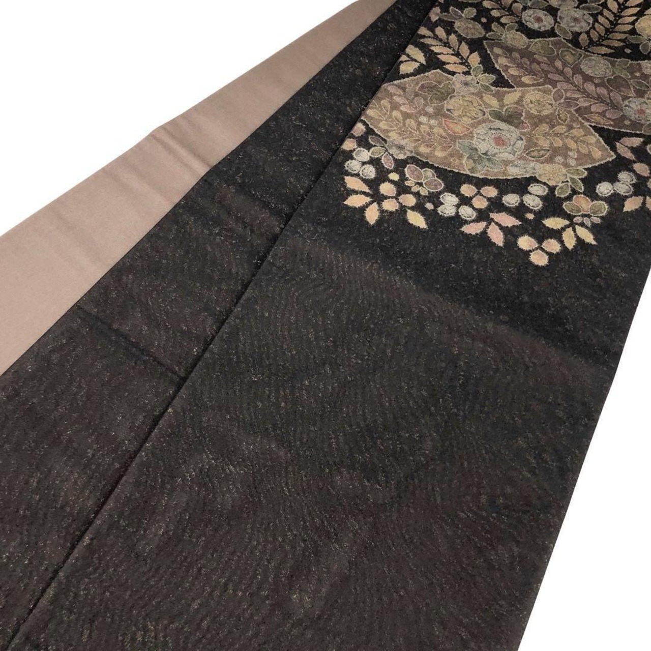 袋帯 翠山工房 美しい辻が花絞り 紗袷の様な透け感のある柄裄 黒色 O-3399