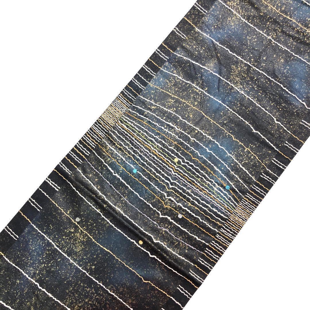 袋帯 純金プラチナ箔 宇宙の様な幻想的な色彩 となみ織物 青鈍色 O-3370