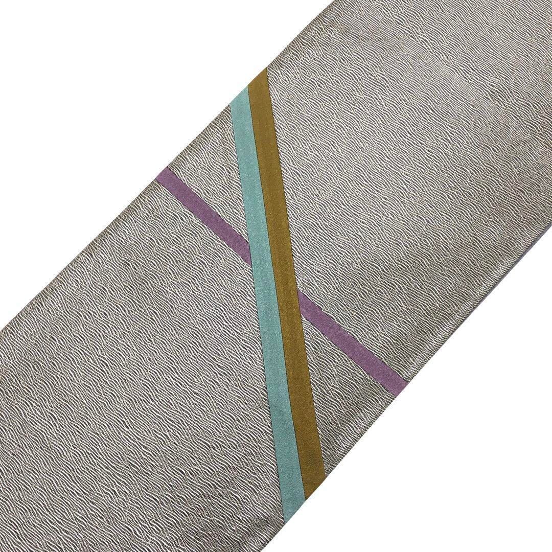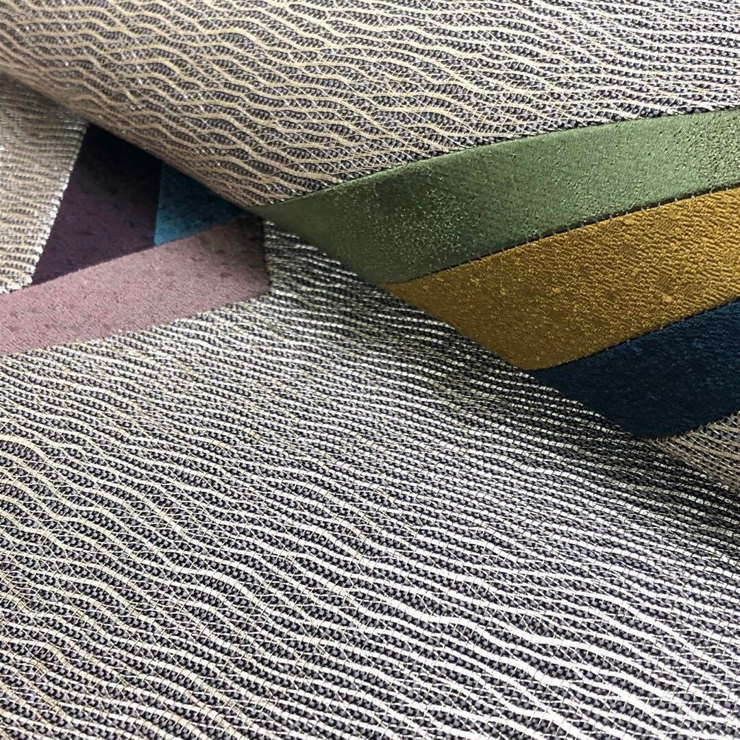 袋帯 友禅作家 千地泰弘 モダン すくい織 染色切嵌 証紙付 銀糸 O-3423