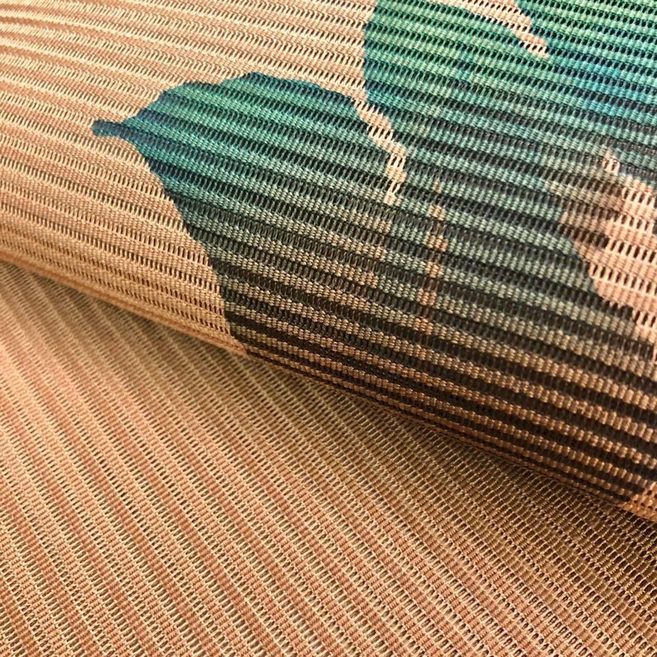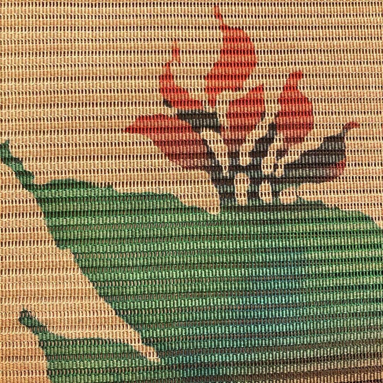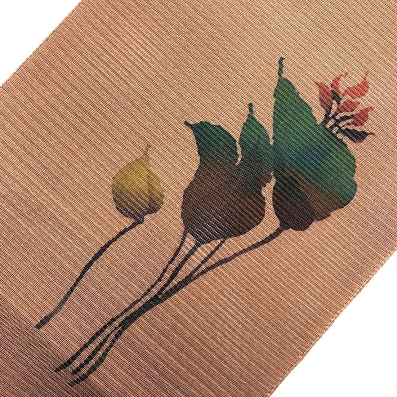 小鹿色のお色味に手描きの花柄がデザインされた素敵な柄行のお品でございます。