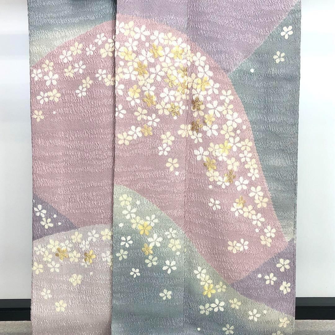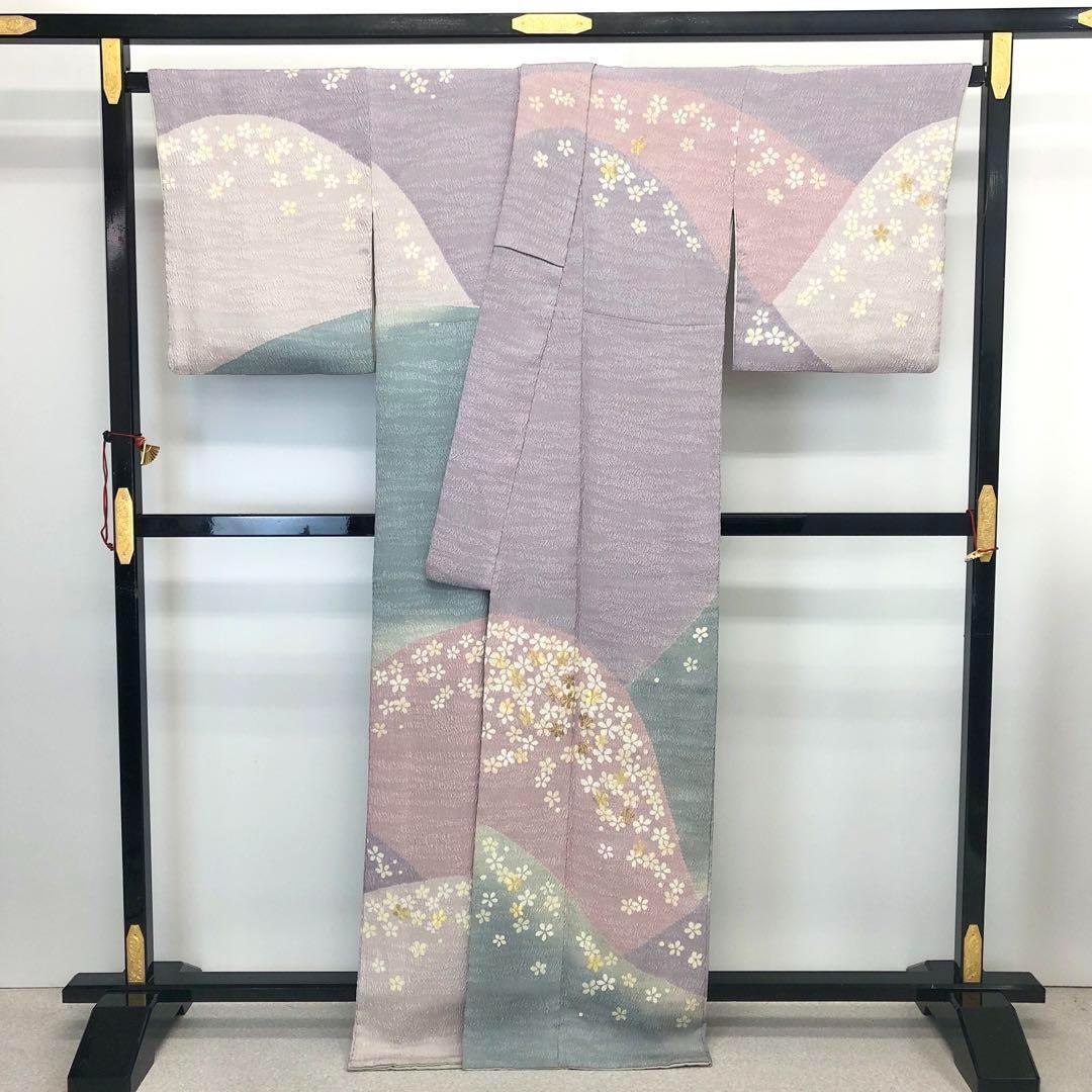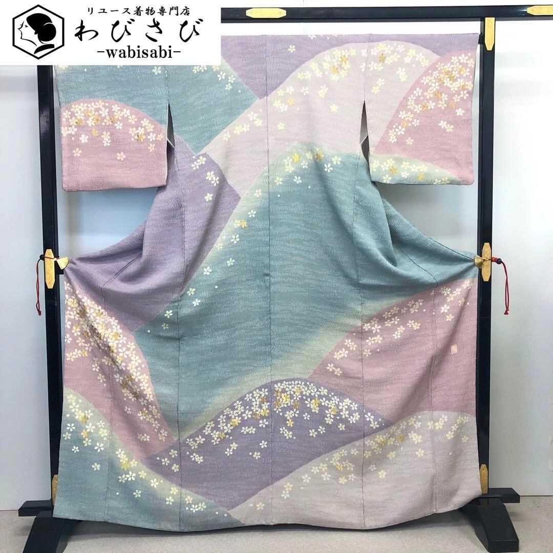 訪問着 青柳 大喜百花 鮮やかな色彩 美しい花絞り トールサイズ K-3556 着物 きもの kimono 和服 和装 中古 リサイクル着物 【送料無料】