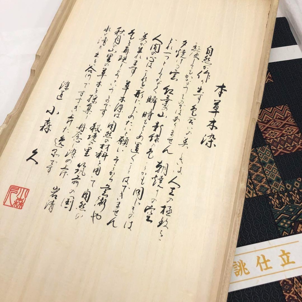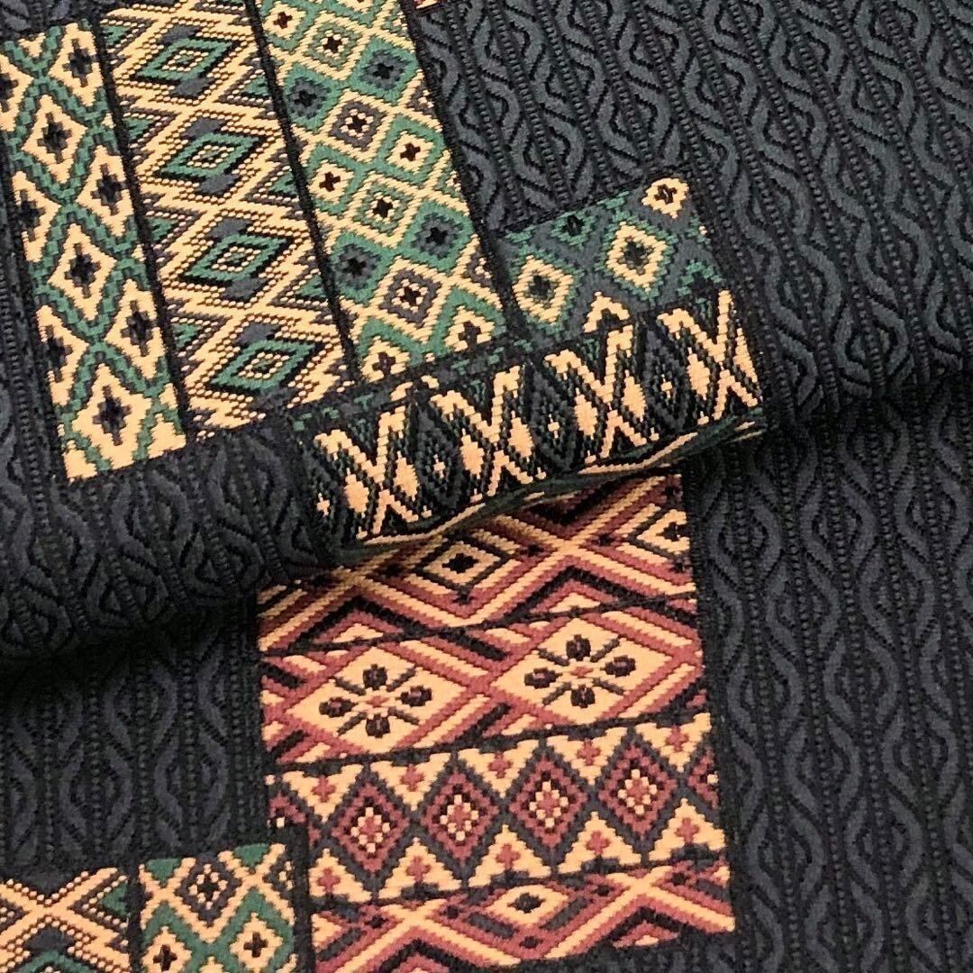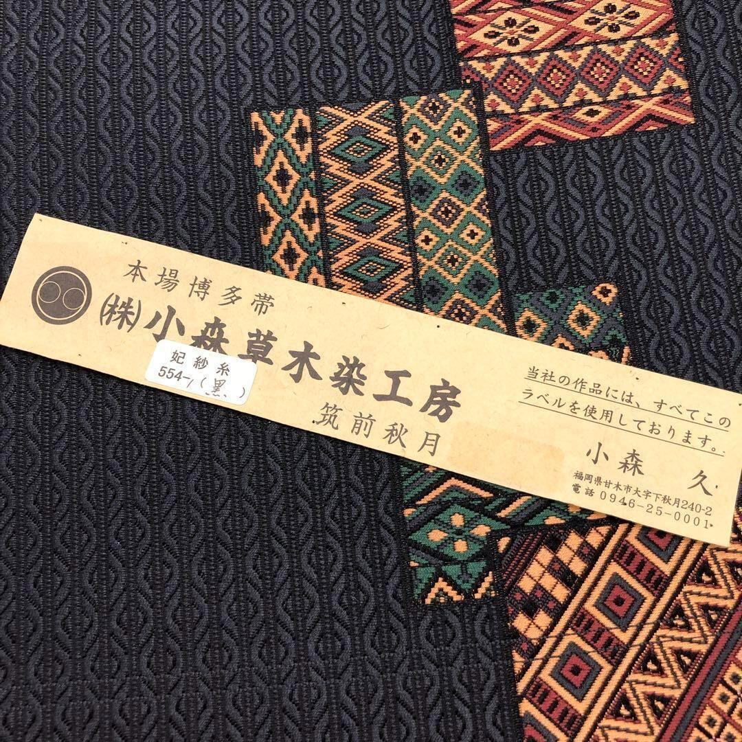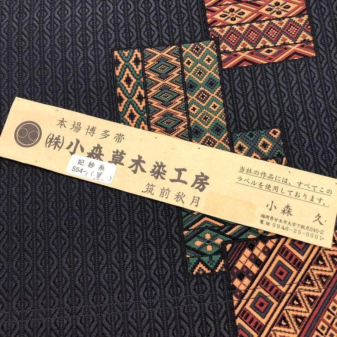 小森久、本場博多織の色彩豊かな多様な織模様、色味の良い草木染の染色でデザインされた美しい柄裄の素敵なお品でございます。