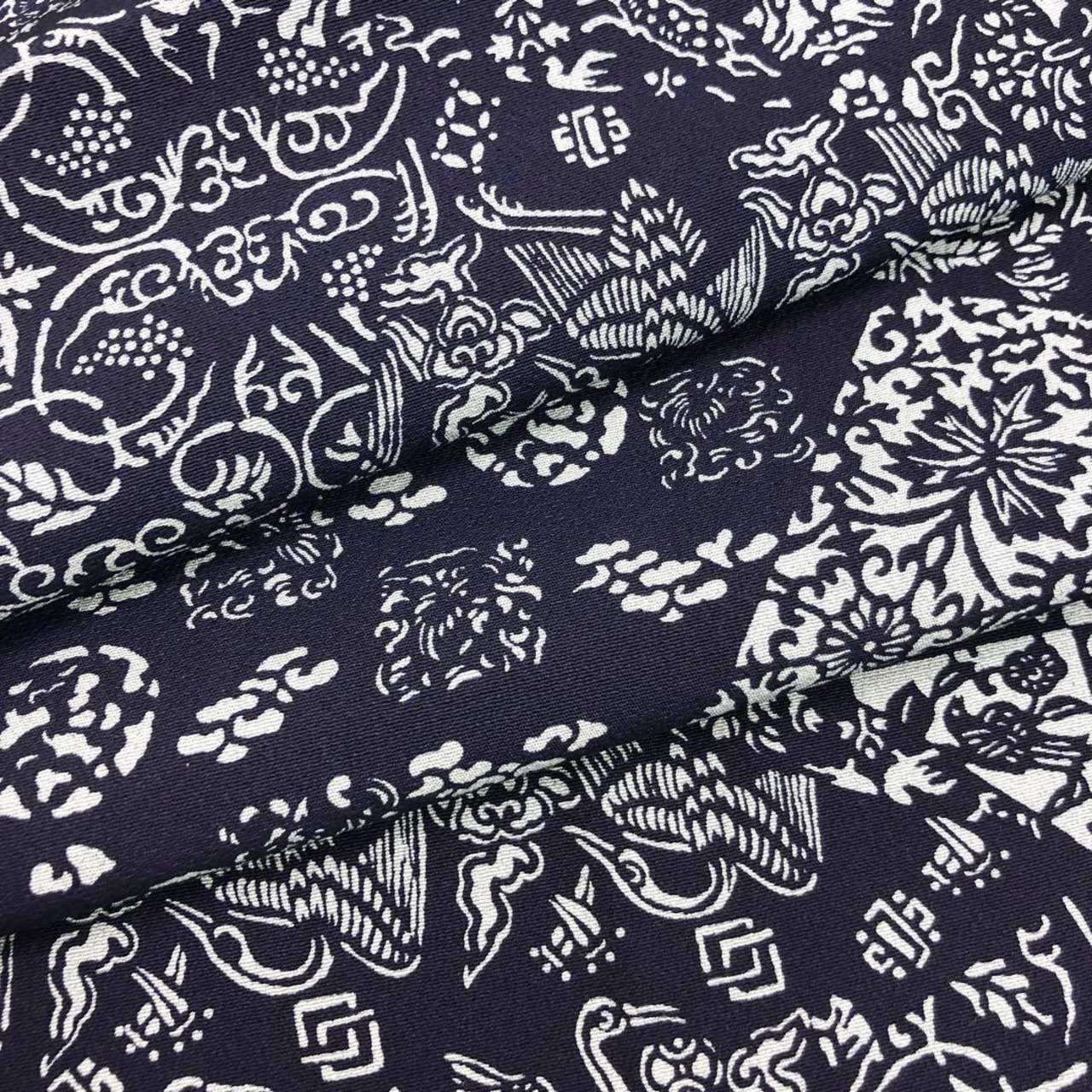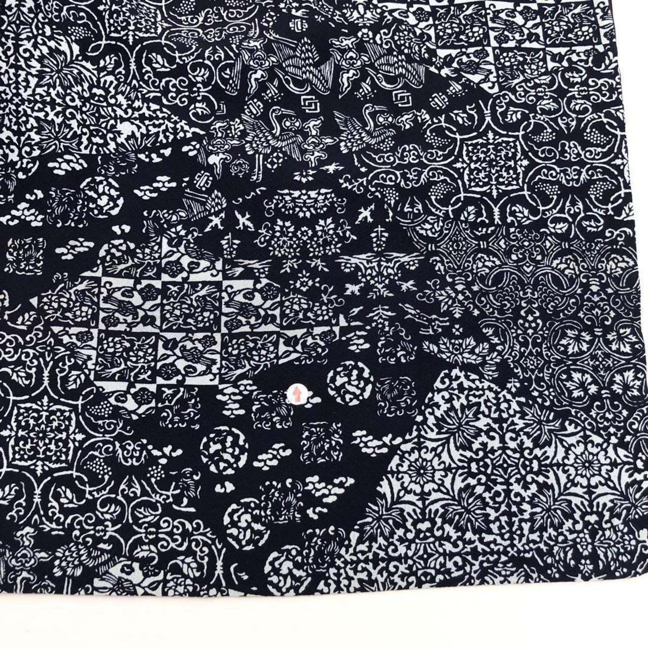 小紋 藍香房 天然藍染 鳥や花草模様 藍色 ガード加工 K-3547