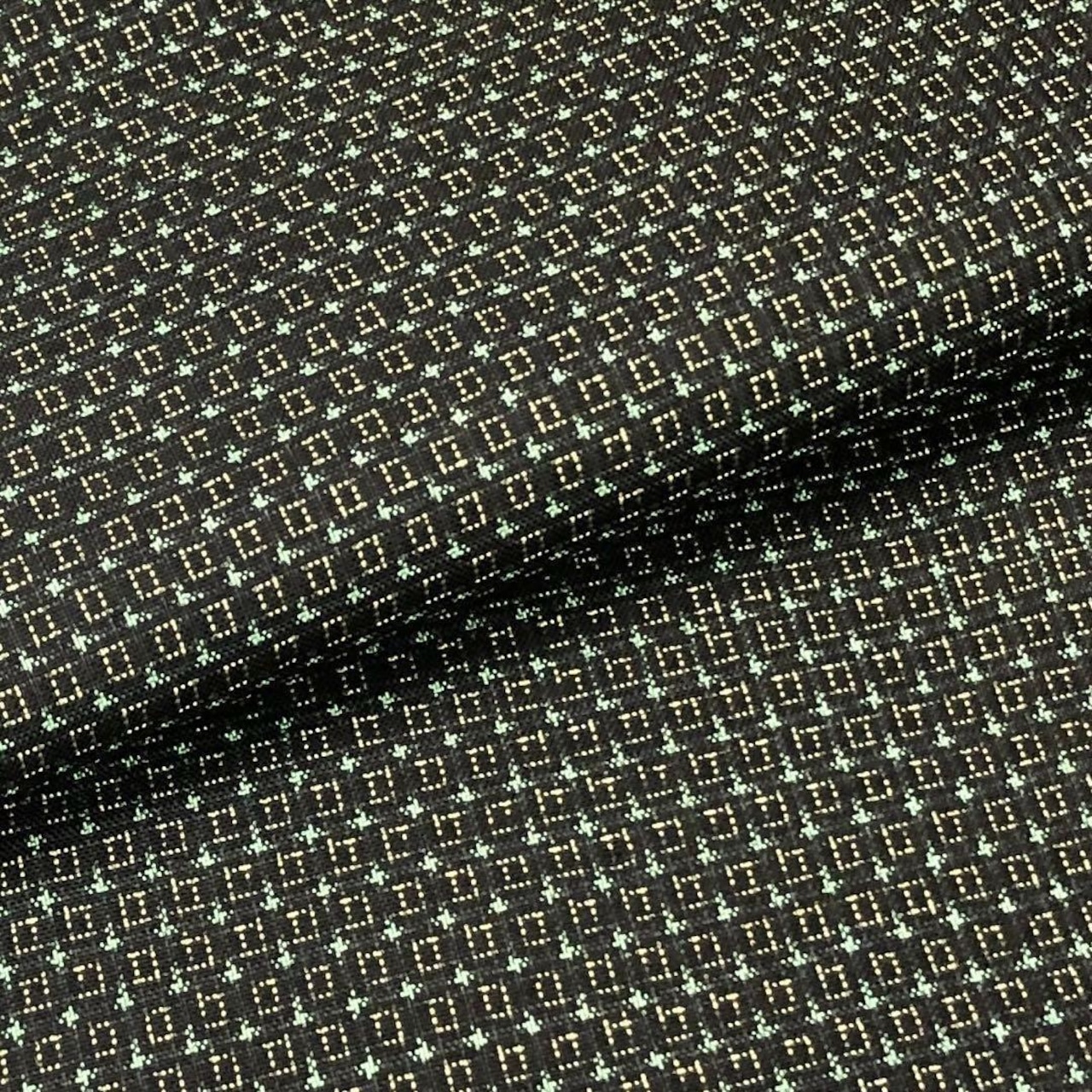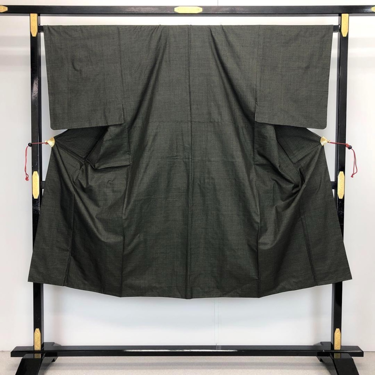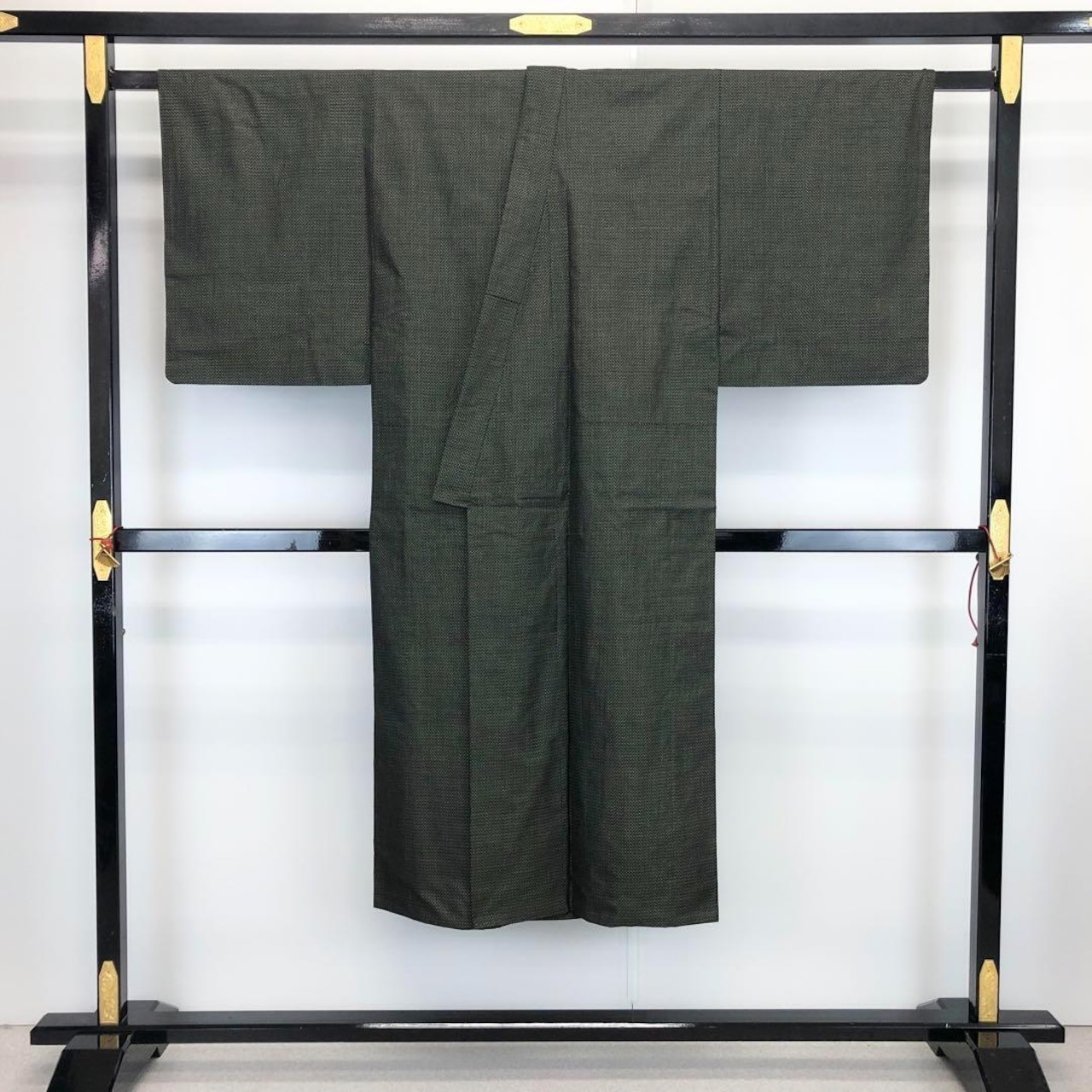 若緑色の雰囲気の良い草木染のお色味に四角模様の変わり絣の素敵な柄裄のお品でございます。