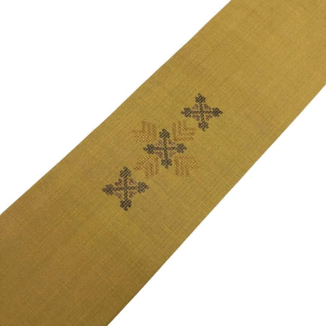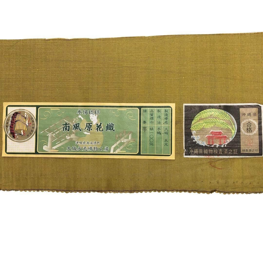 名古屋帯 本場琉球 南風原花織 証紙付 大城永光織物 芥子色 O-3427 着物 きもの kimono 和服 和装 中古 リサイクル着物 【送料無料】