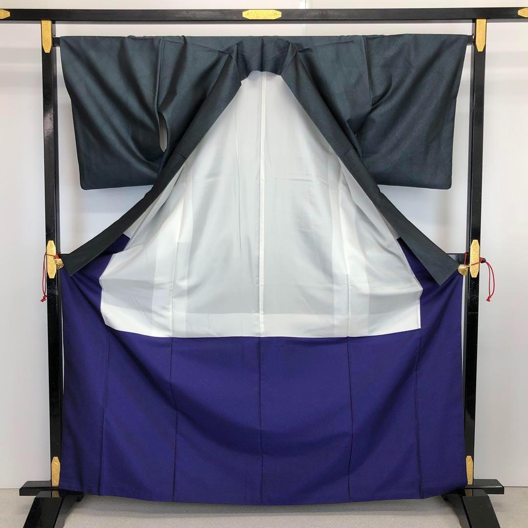 青鈍色のモダンなお色味の縞大島に抽象模様がデザインされた素敵なお品でございます。