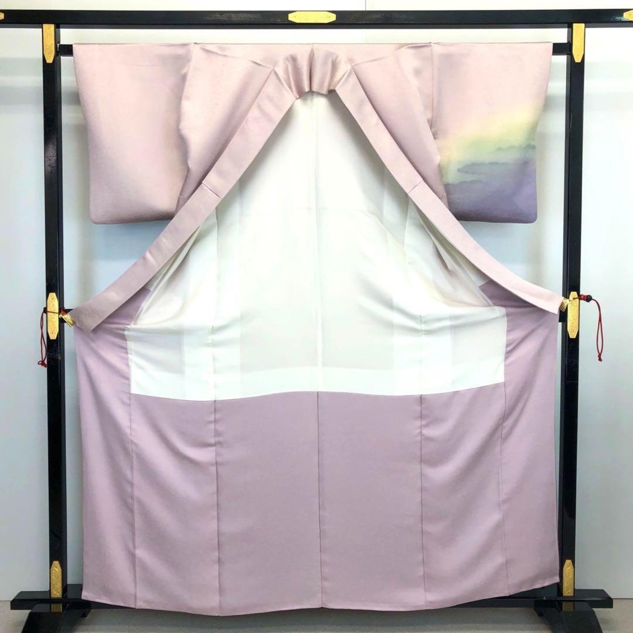 薄梅鼠色の上品なお色味に極上の暈し模様が施された素敵なお品でございます。