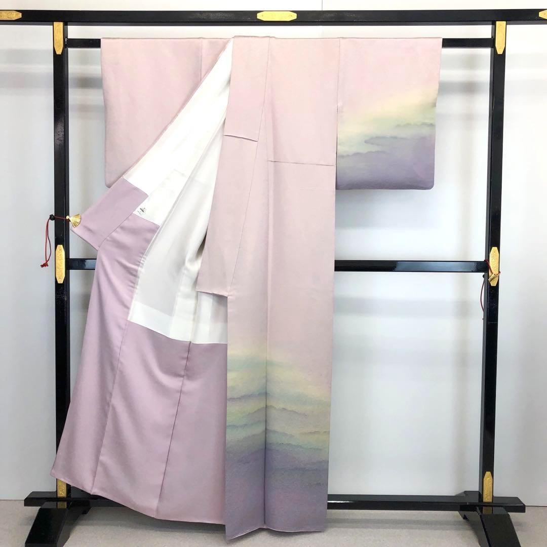 付下げ 二代目久保田一竹 極上の暈し 金通し 薄梅鼠色 ガード加工 K-3525 着物 きもの kimono 和服 和装 中古 リサイクル着物 【送料無料】