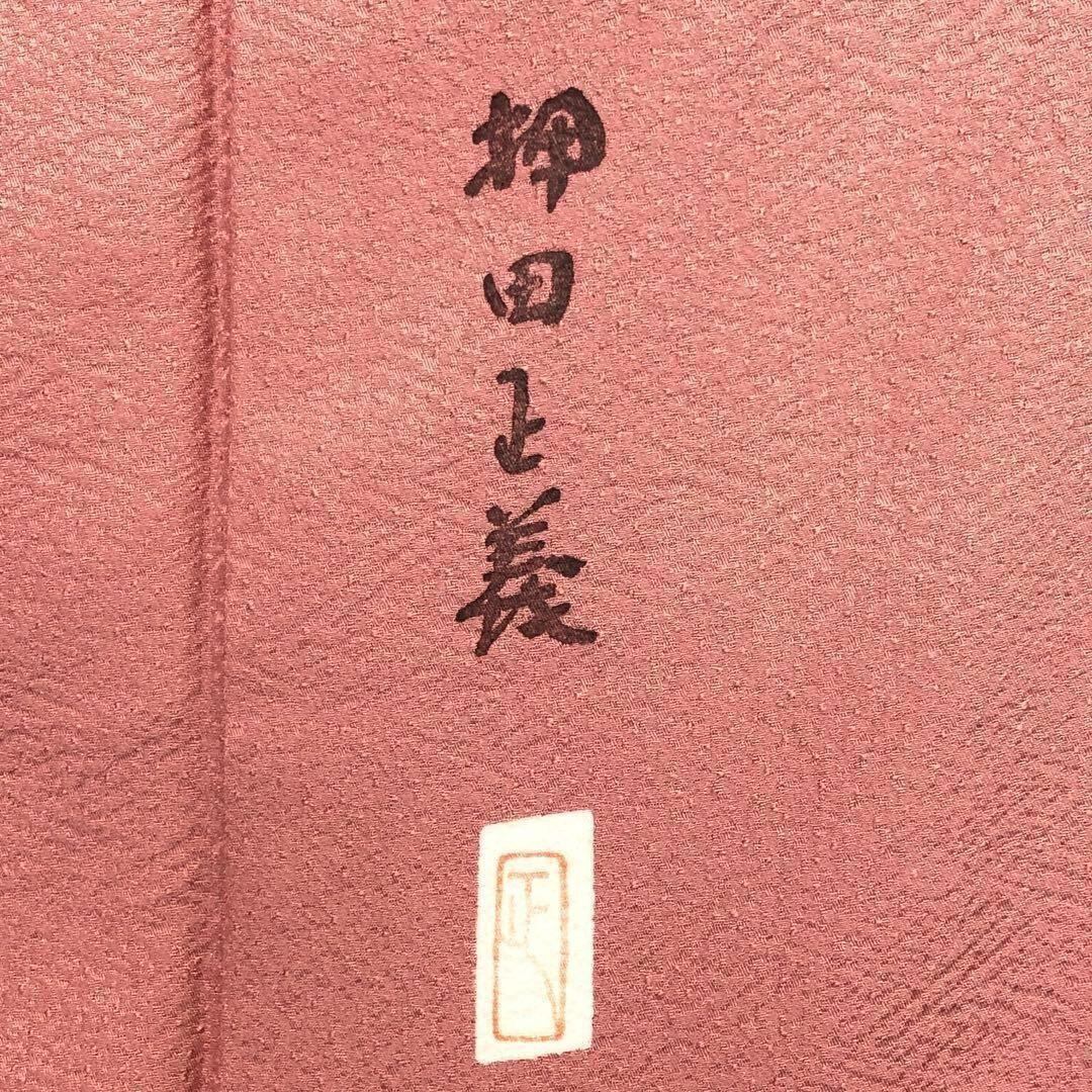 長春色のお色味に紗綾形の地模様が施された素敵なお品でございます。