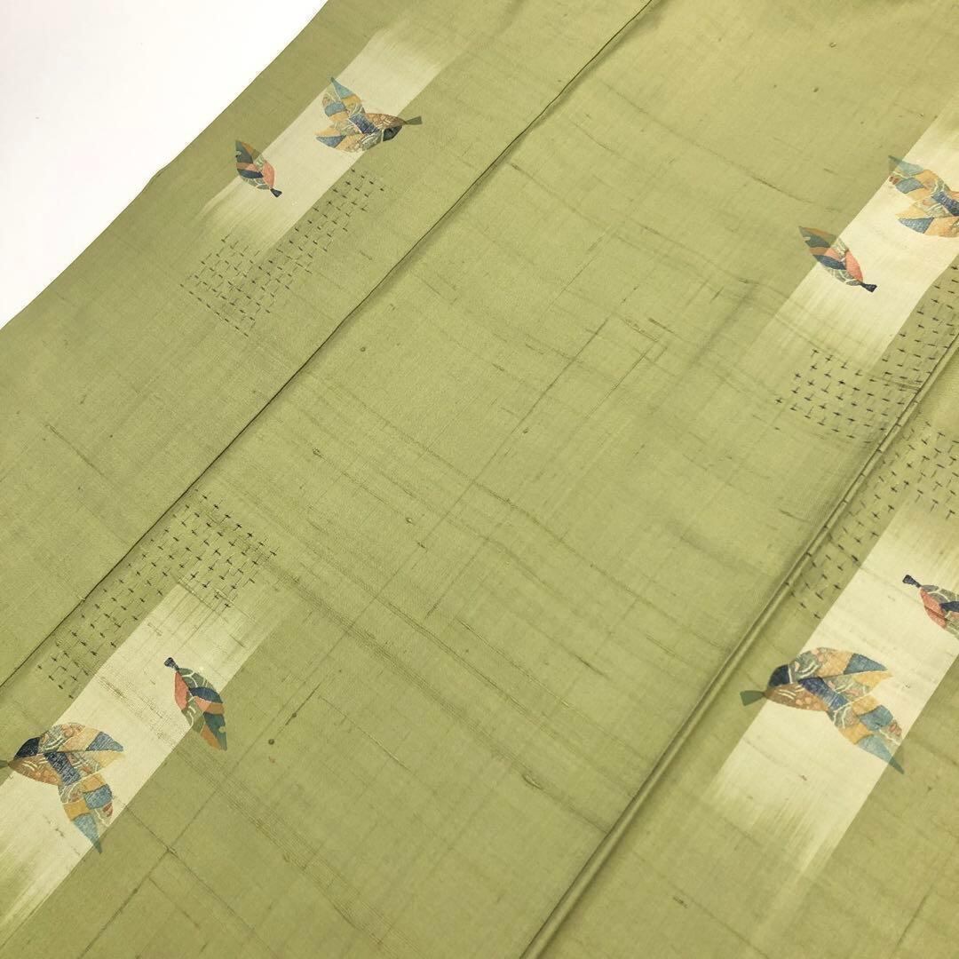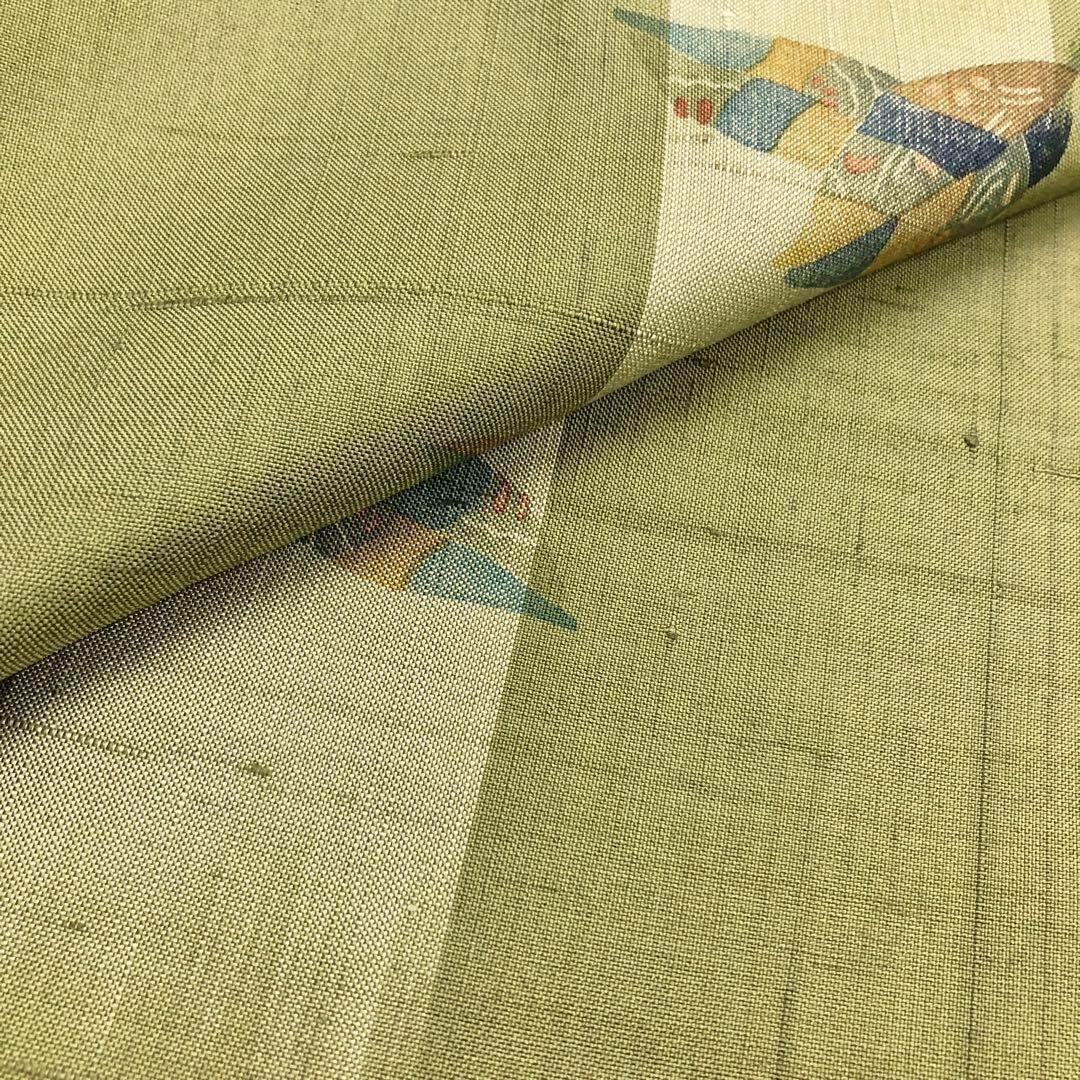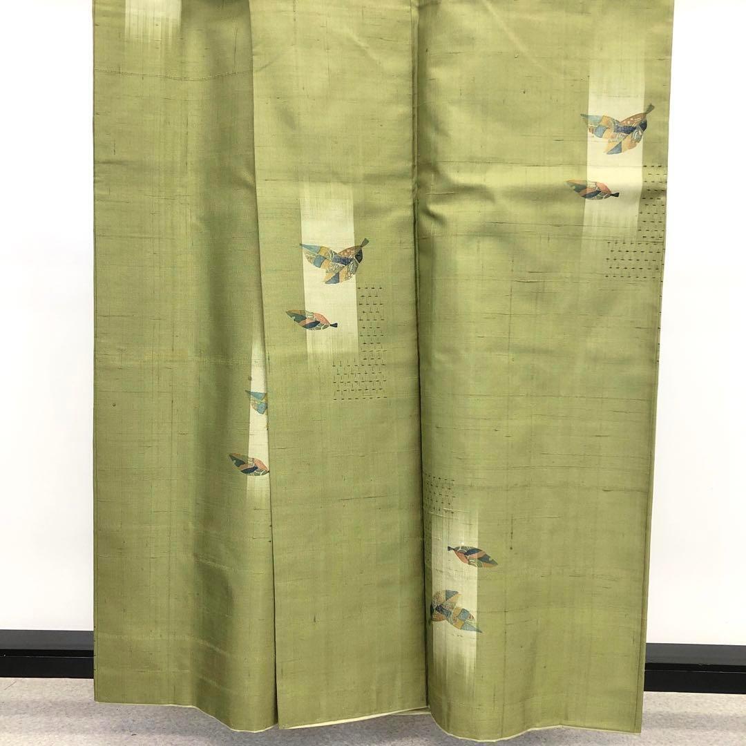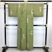 山鳩色の落ち着いたお色味に葉模様の柄行がデザインされた素敵なお品でございます。