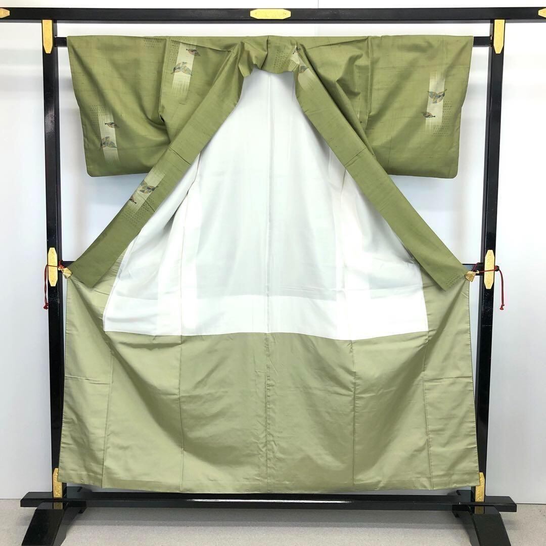 紬着物 伝統工芸作家 七代目 吉澤与市 証紙付 山鳩色 K-3519 着物 きもの kimono 和服 和装 中古 リサイクル着物 【送料無料】
