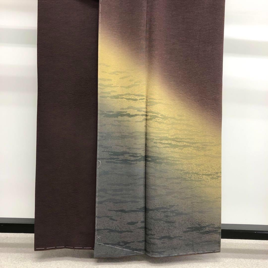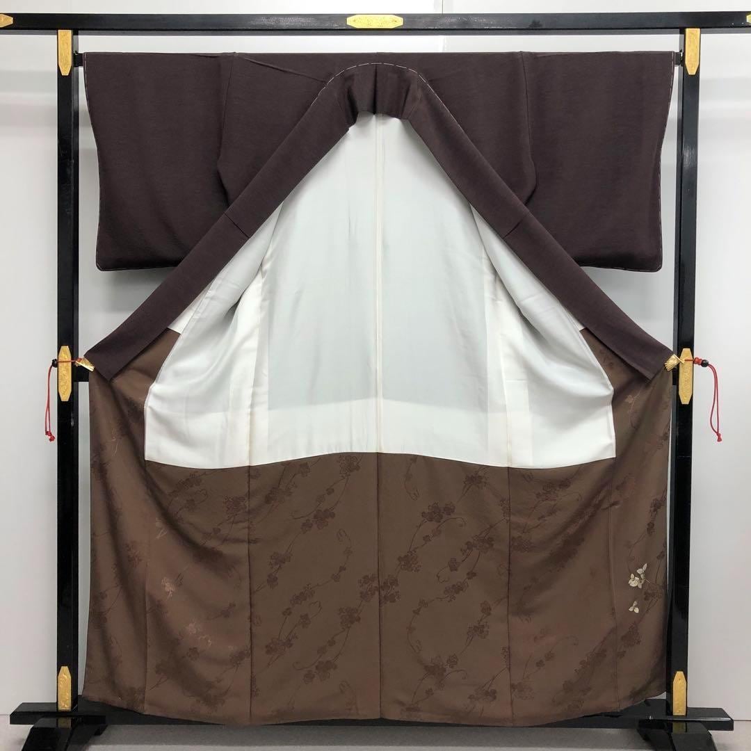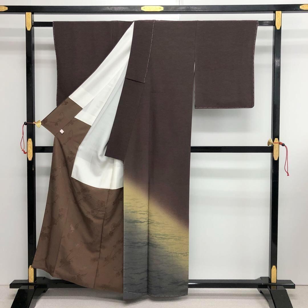 紅檜皮色の落ち着きのあるお色味にグラデーション、霞模様の柄裄が品のある素敵なお品でございます。