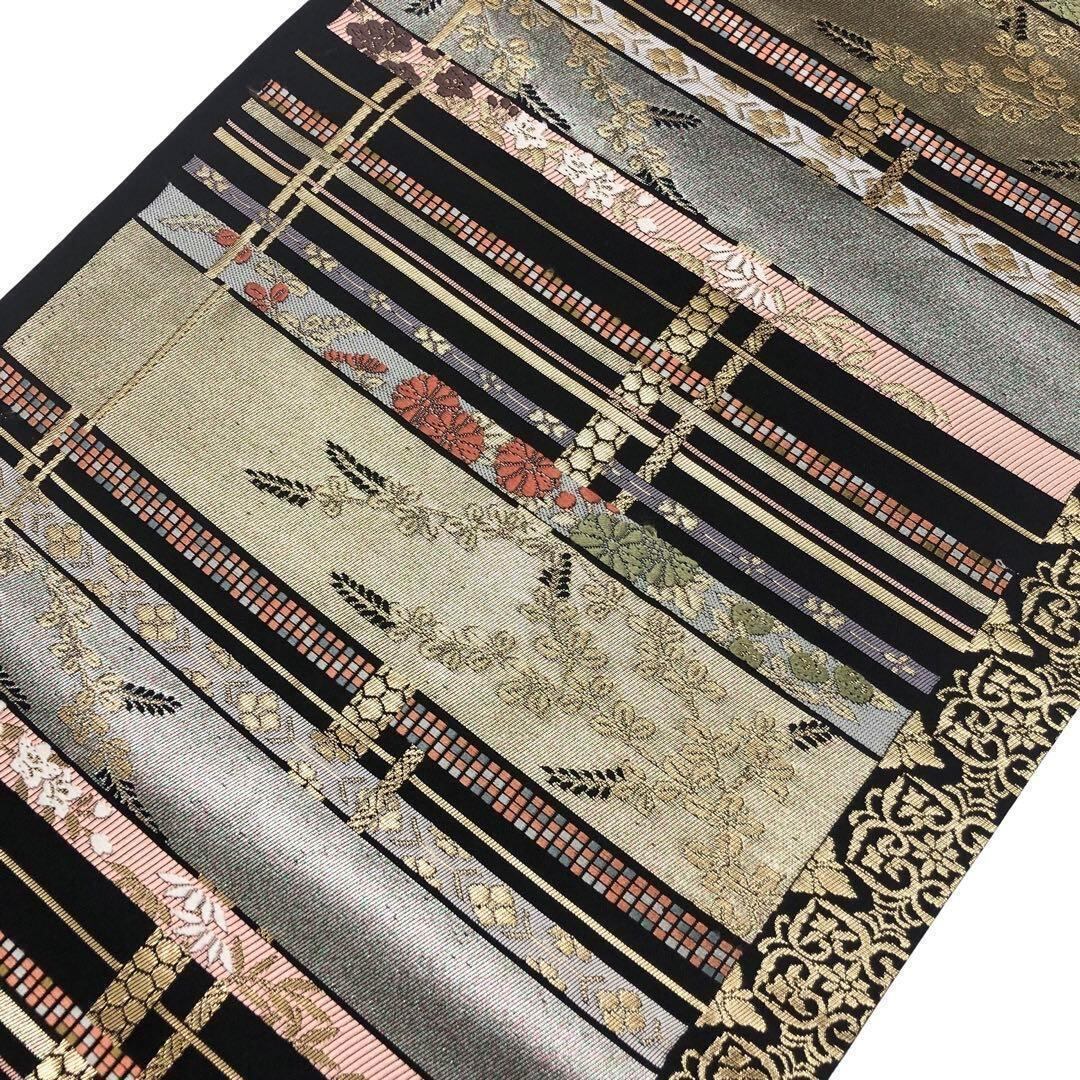 黒色に金銀彩を使った横段花柄模様、菊、桔梗、萩の花などが煌びやかにデザインされた素敵な柄裄のお品でございます。