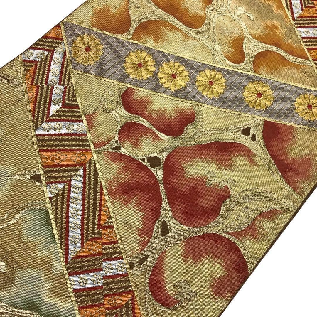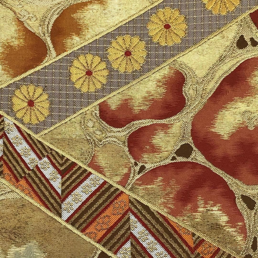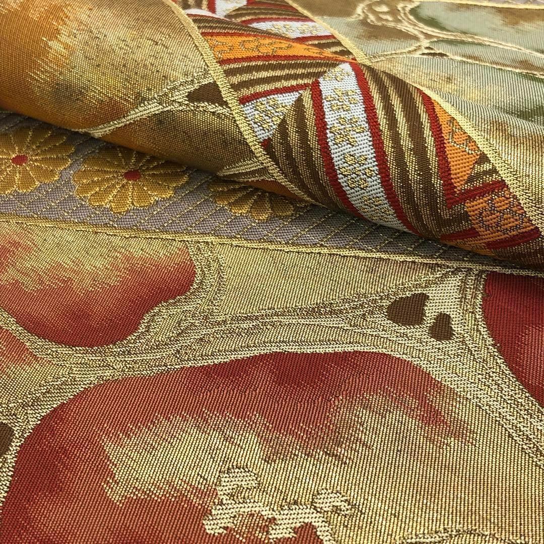唐金色ベースの煌びやかなお色味に花模様がデザインされた素敵な柄裄のお品でございます。