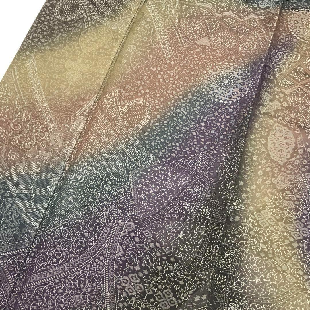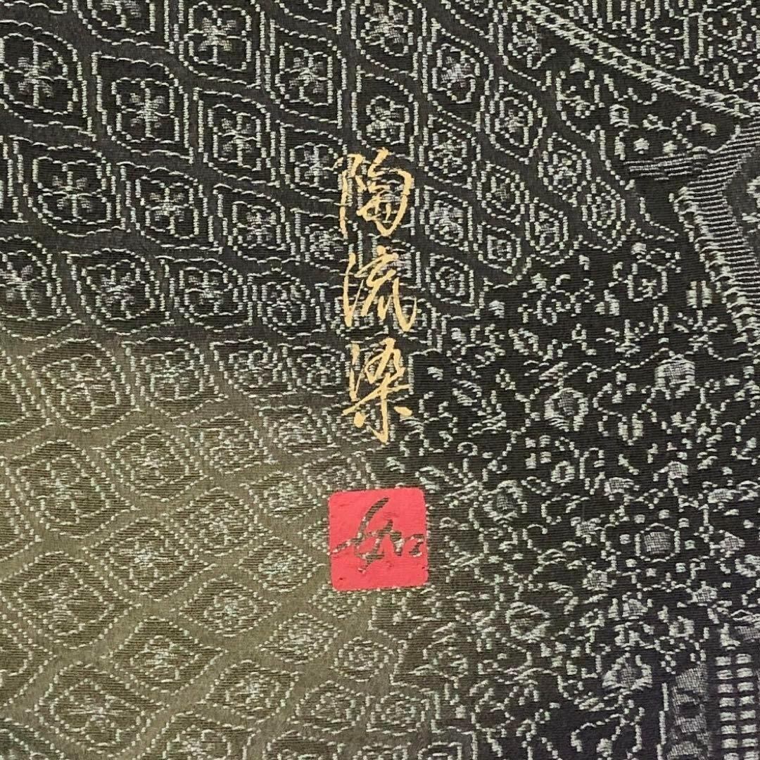 鈍色ベースのお色味に花唐草模様などのの柄裄、色鮮やかな陶流染の色彩が美しい素敵な柄行のお品でございます。