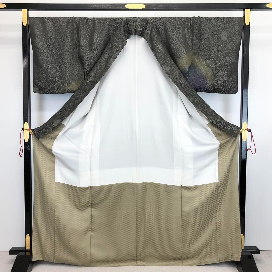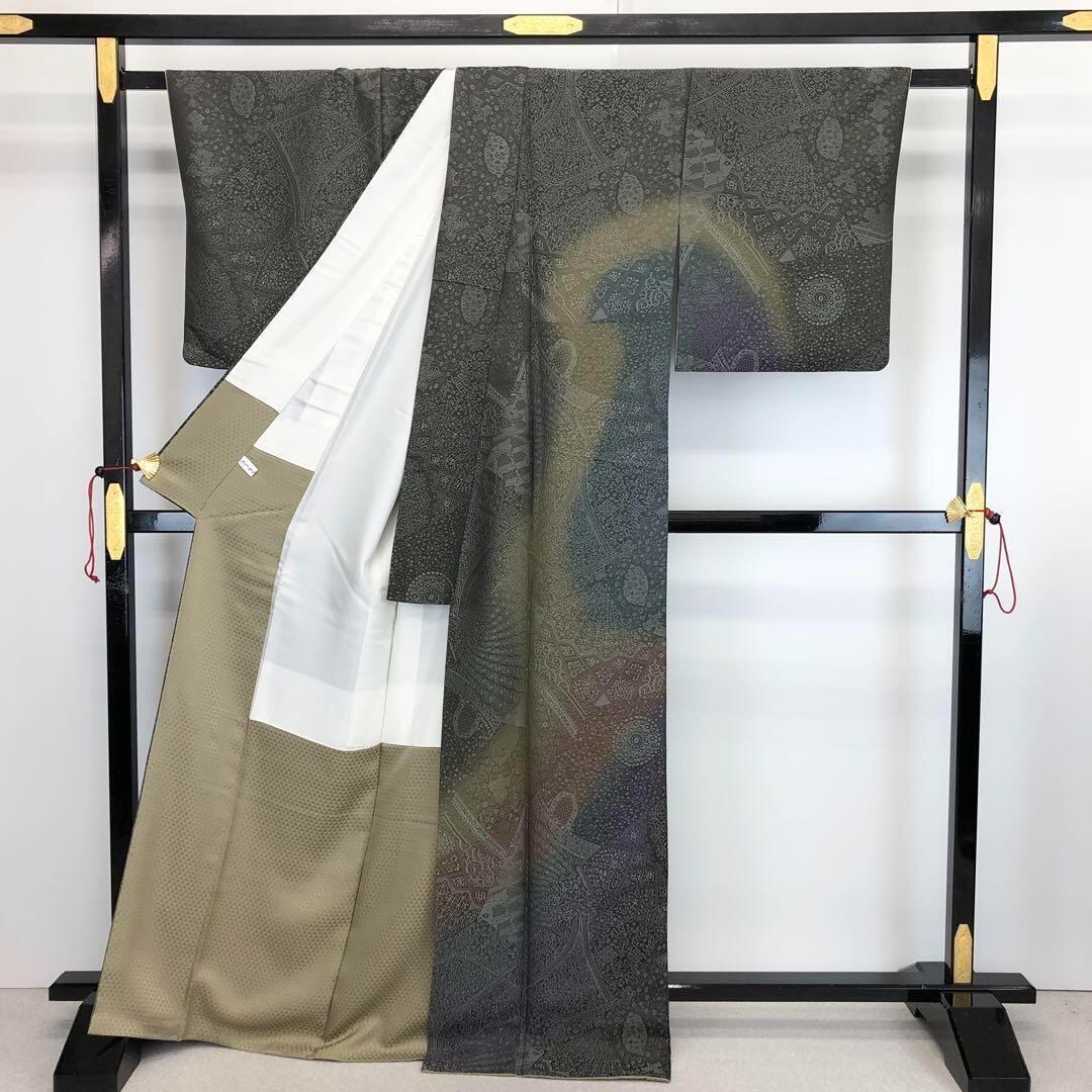 訪問着 陶流染 千寿 花唐草模様 鈍色 ガード加工 トールサイズ K-3559 着物 きもの kimono 和服 和装 中古 リサイクル着物 【送料無料】
